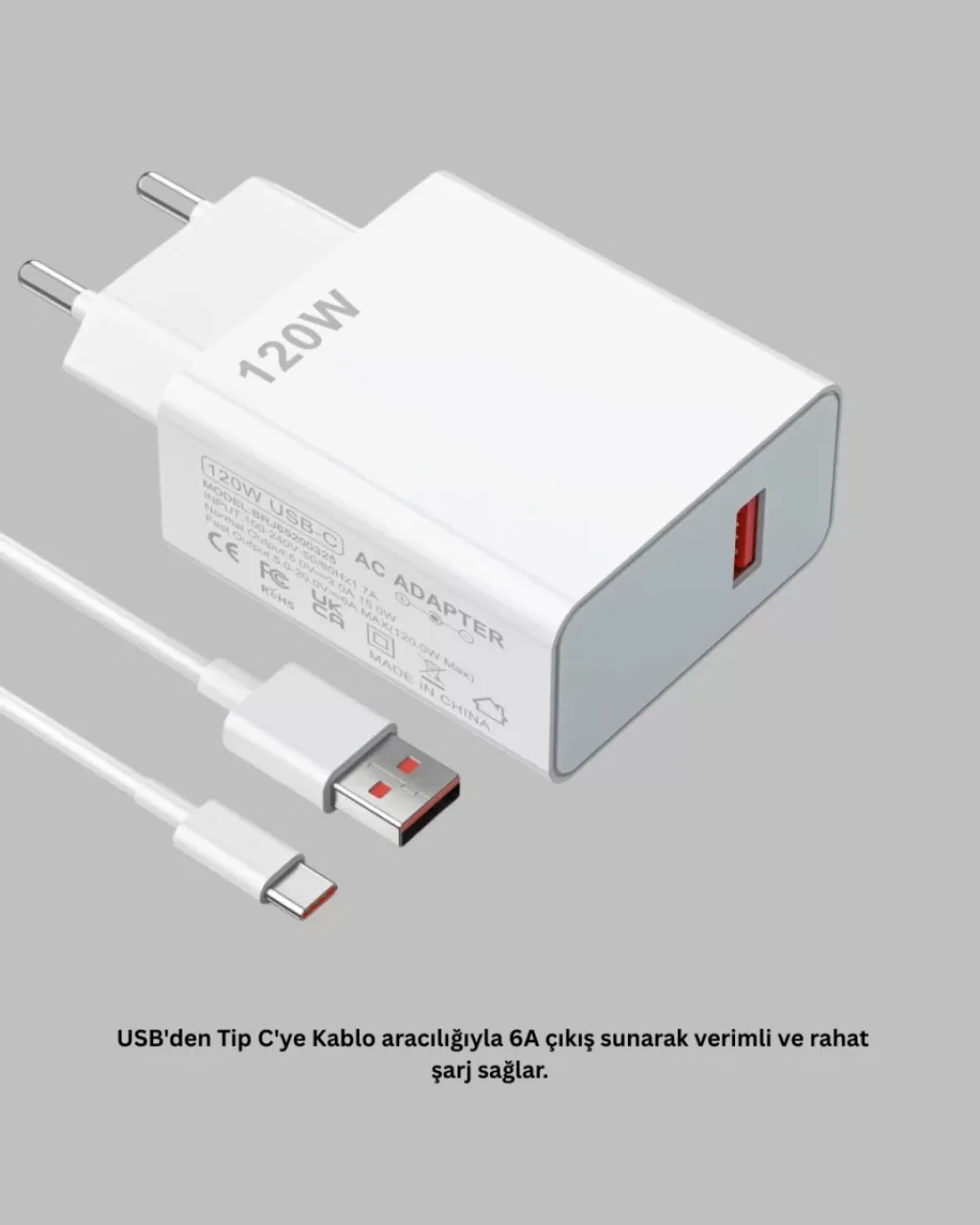 Bu 120 Watt ultra hızlı şarj cihazı, güçlü çıkışı ve çok yönlü uyumluluğuyla modern teknolojik cihazları kısa sürede şarj etmek için geliştirilmiştir. Turbo şarj sistemi birden fazla cihazı bile hızlı şekilde şarj etmeye uygundur. Cihaz algılama özelliği sayesinde enerji akışı otomatik ayarlanır.Isı kontrol mekanizması, adaptörün stabil çalışmasını sağlar ve uzun kullanımlarda bile aşırı ısınmayı engeller. Hafif ve kompakt tasarımı sayesinde her yere kolayca taşınır. Dayanıklı dış yüzeyi uzun ömürlü kullanım sunar.Samsung, Xiaomi, Poco, Realme ve Huawei’nin Type-C girişli tüm modelleriyle uyumlu çalışır. Kutu içindeki kablo yüksek hızda veri aktarımı ve hızlı şarja uygun şekilde tasarlanmıştır.Günlük yaşamda hem hız hem güvenlik hem de taşınabilirlik arayan kullanıcılar için ideal bir ultra hızlı şarj çözümüdür.