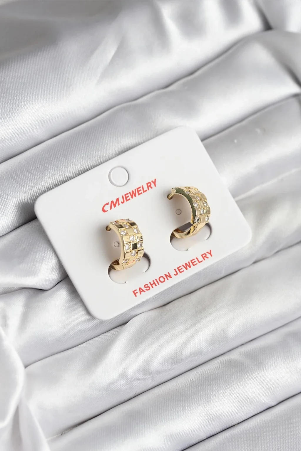 Çiçek Model Gold Renk Pirinç 3'lü Kadın Küpe Seti