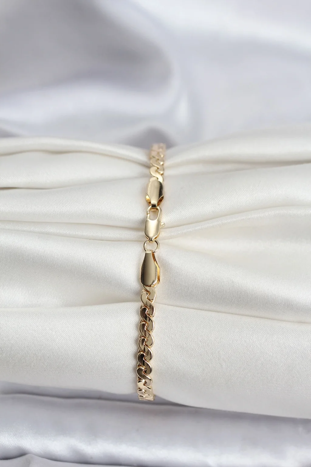 14K Gold Renk Kaplama Lazerli Zincir Model CM Kadın Bileklik