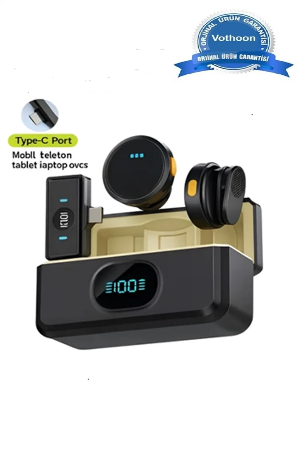 2 Adet Profesyonel Kablosuz Yaka Mikrofonu Typce Uyumlu Manyetik Klipsli