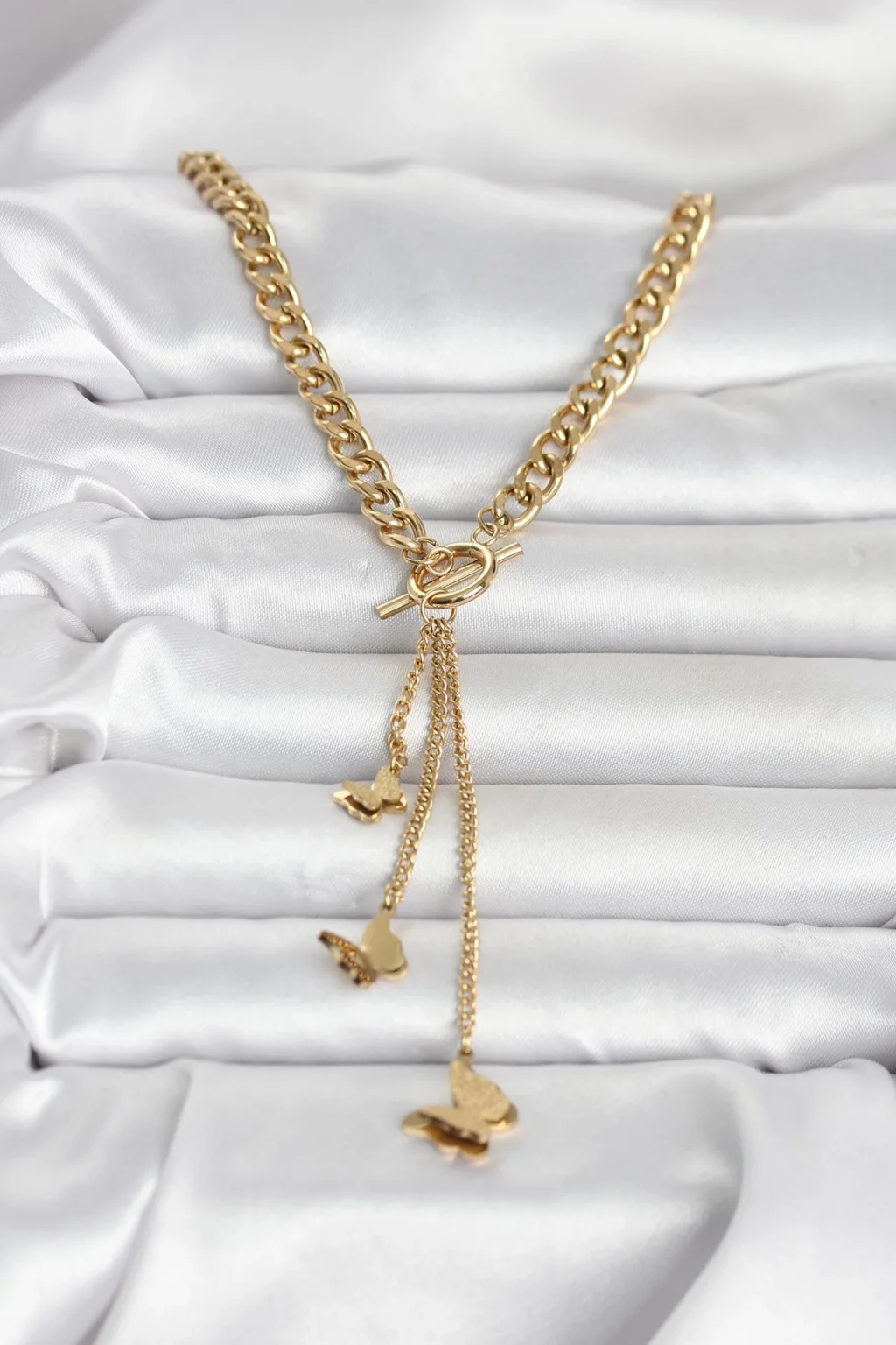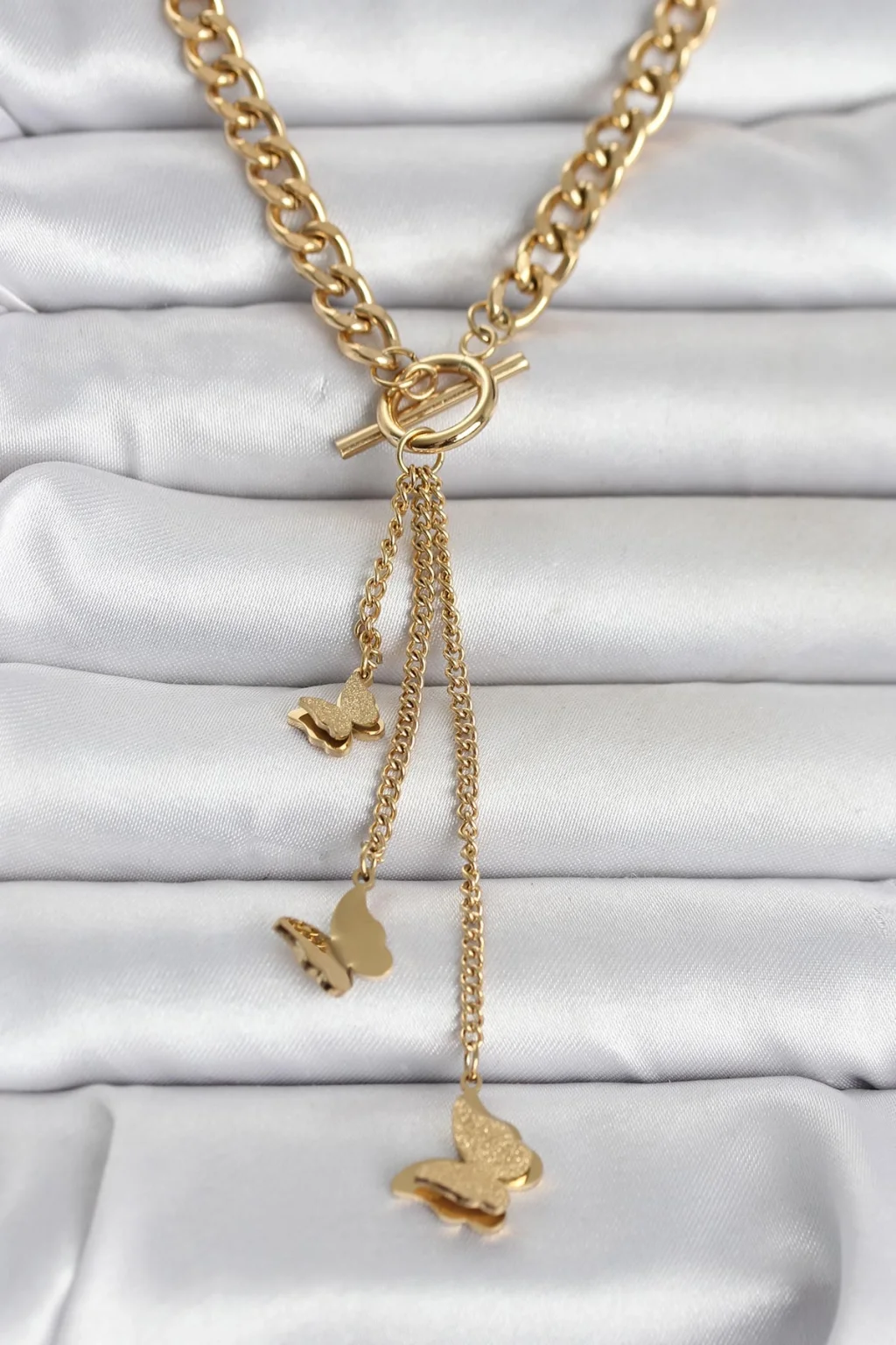 316L Çelik Gold Renk Kelebek Sallantılı Kadın Kolye