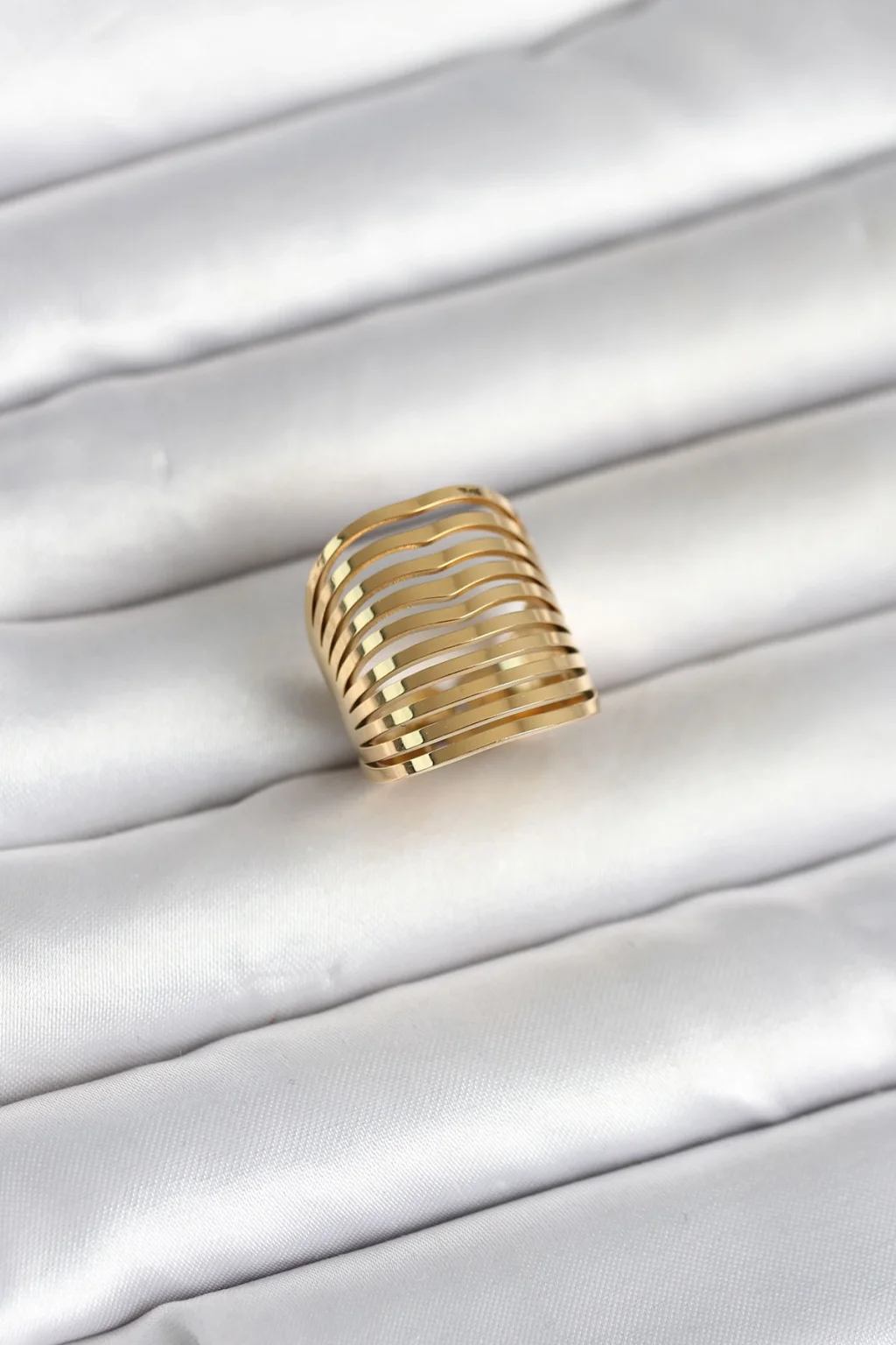 316L Çelik Gold Renk Plaka Model Kadın Yüzük