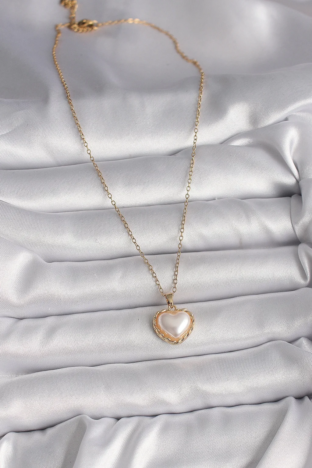 316L Çelik Gold Renk Zincir 3D İnci Kalp Model Kadın Kolye