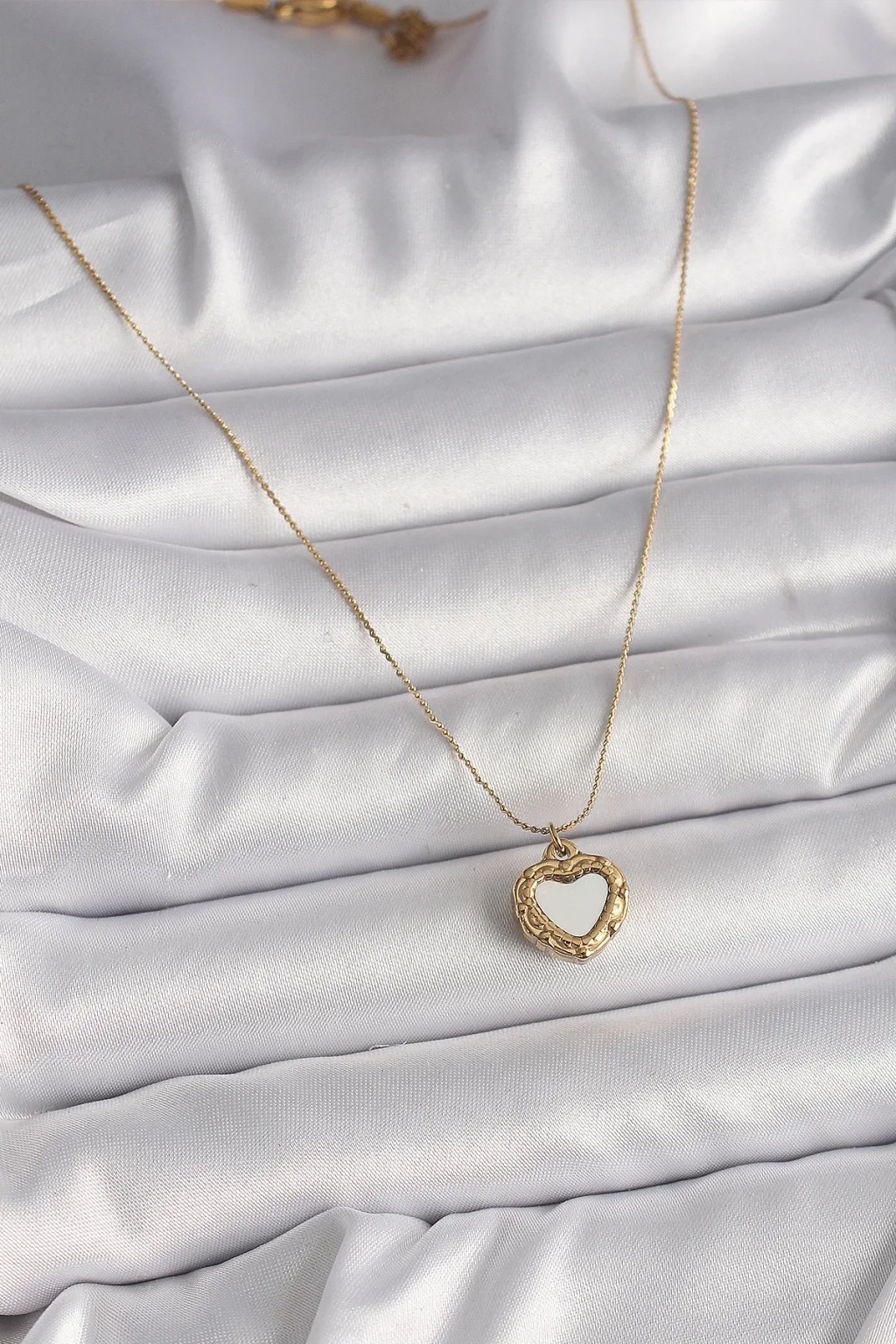 316L Çelik Gold Renk Zincir Sedefli Kalp Model Kadın Kolye