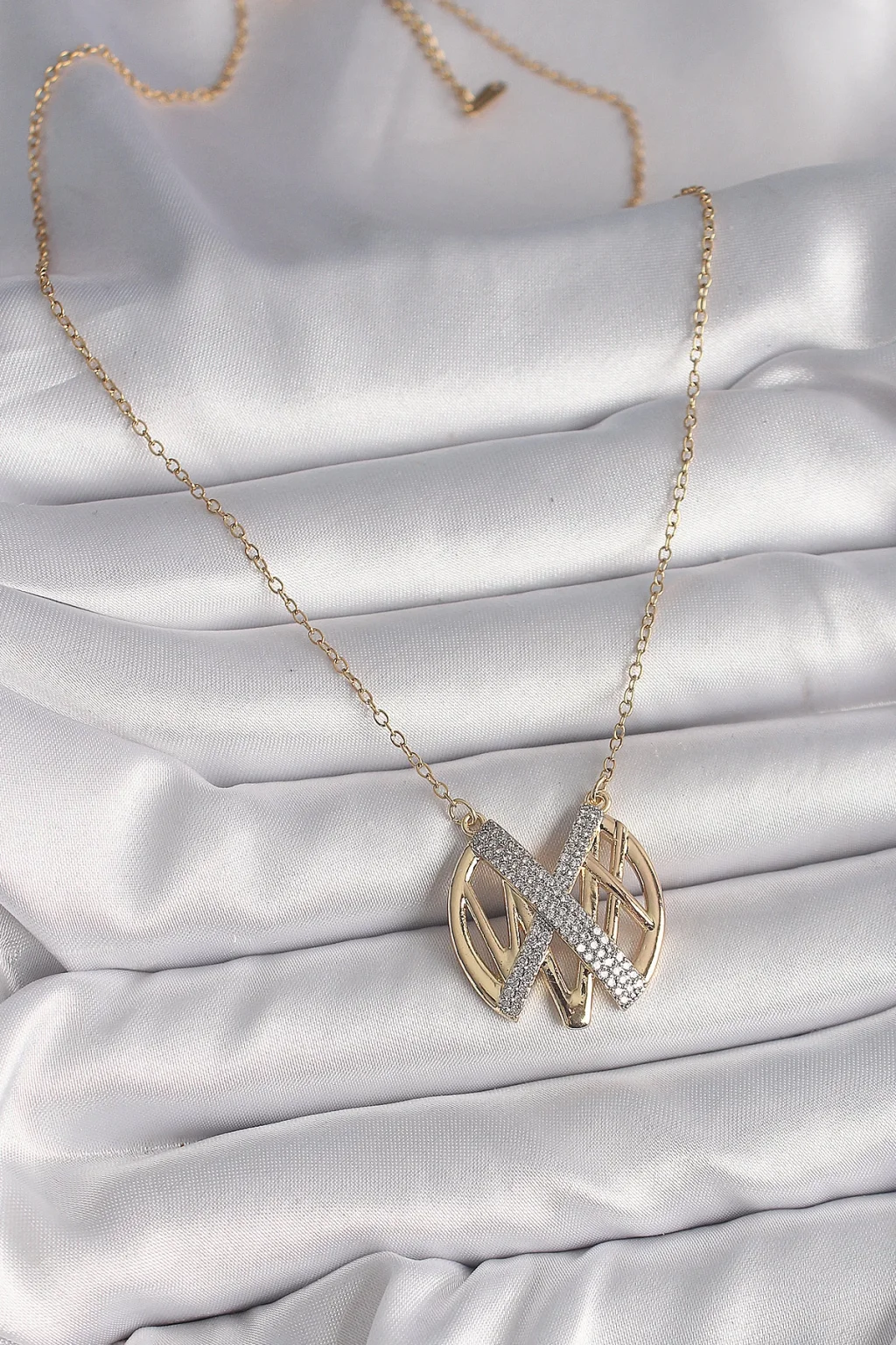 316L Çelik Gold Renk Zirkon Taşlı Vintage Model Kadın Kolye