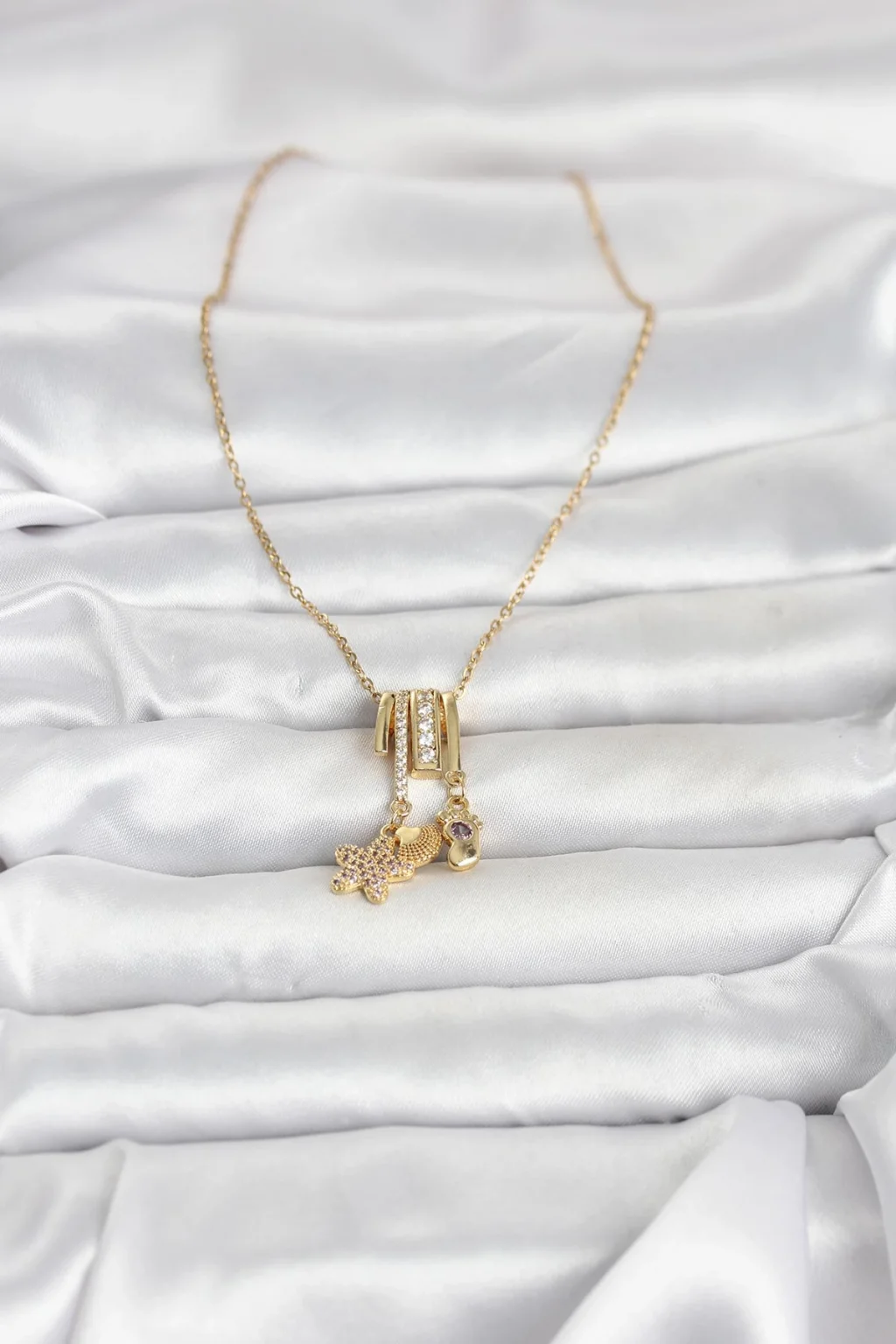 316L Çelik Gold Zirkon Taşlı Deniz Tema Charmlı Kadın Kolye