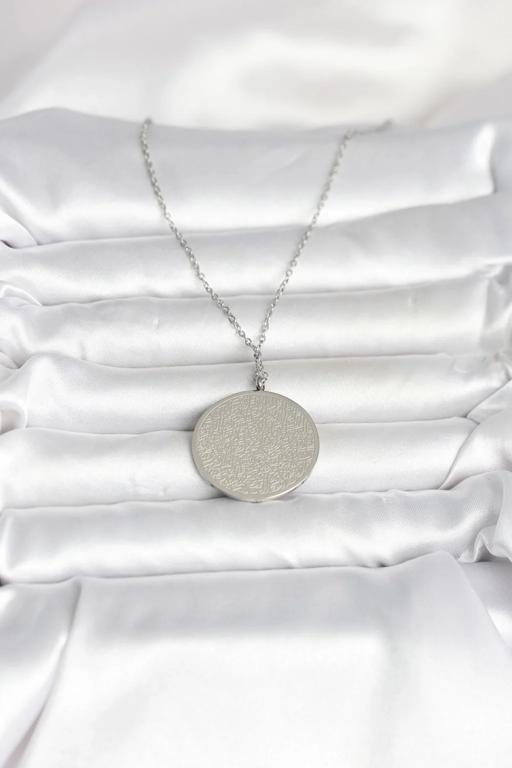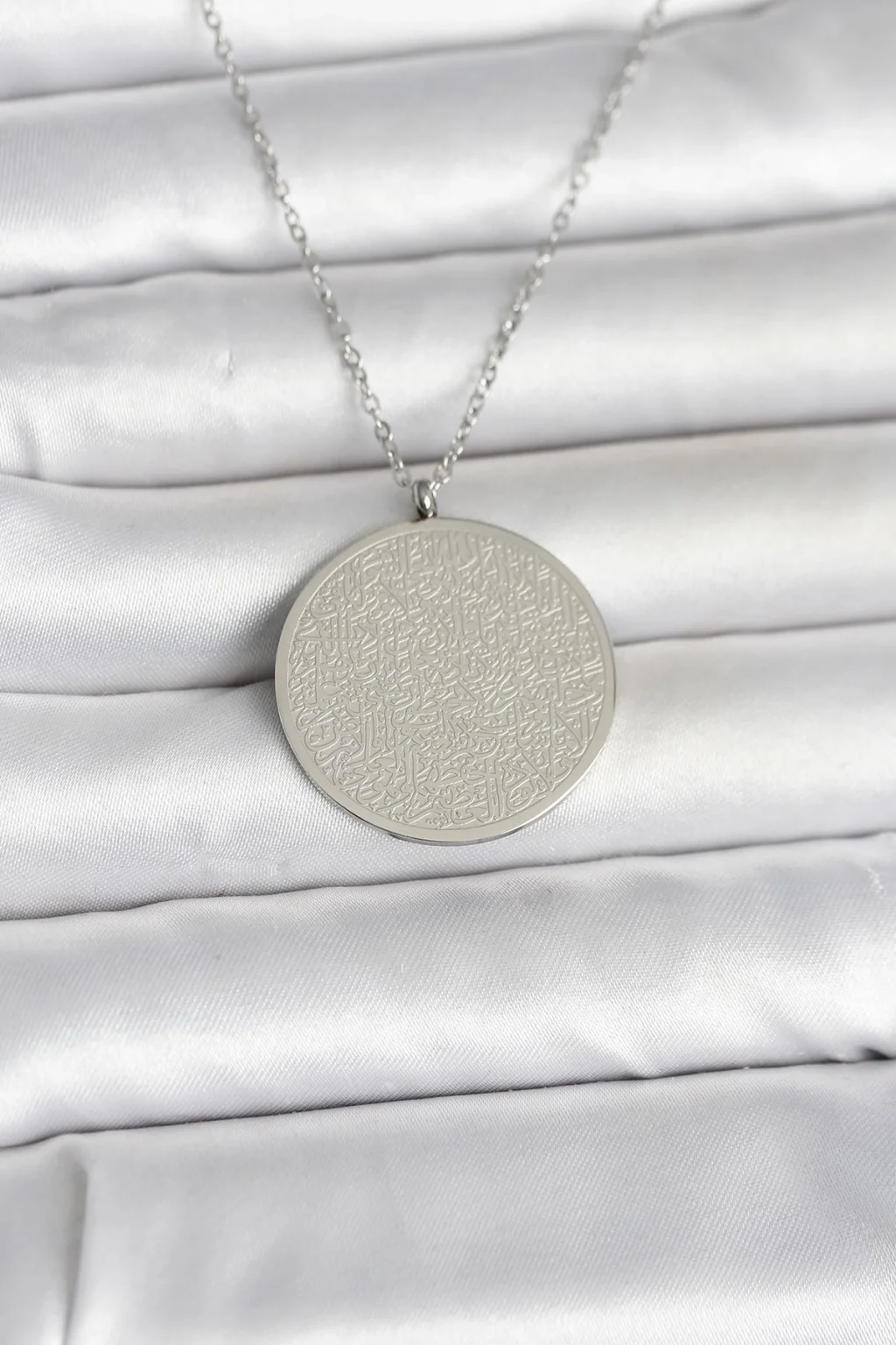 316L Çelik Gümüş Renk Ayetel Kürsi Yazılı Kolye