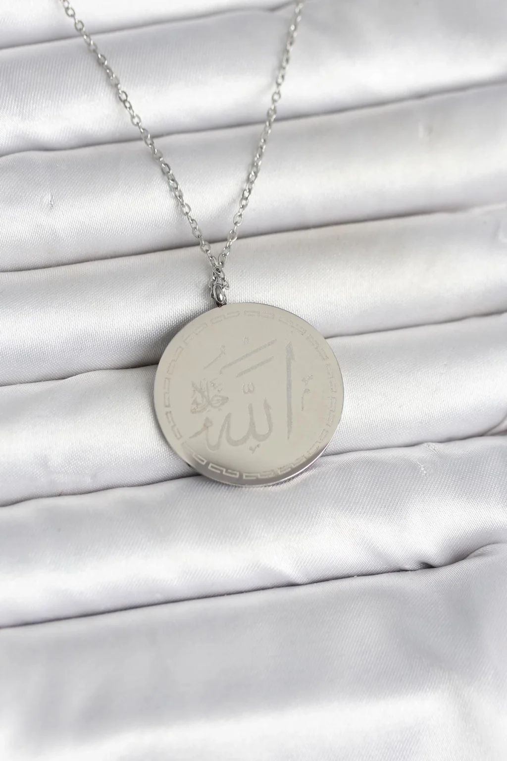 316L Çelik Gümüş Renk Ayetel Kürsi ve Allah Yazılı Kolye