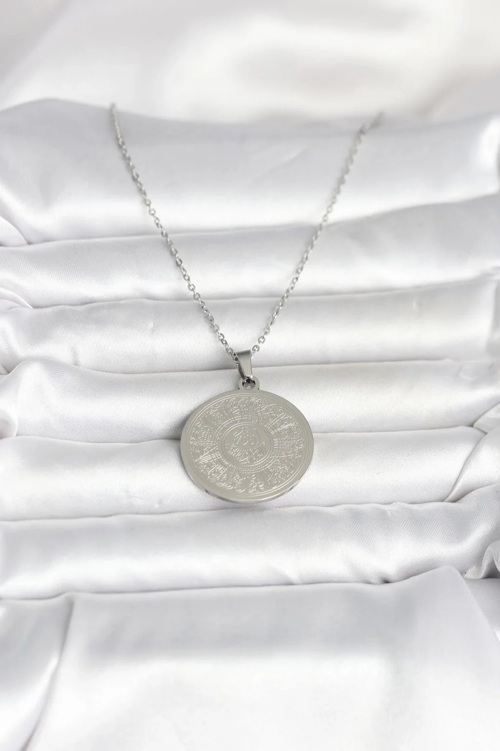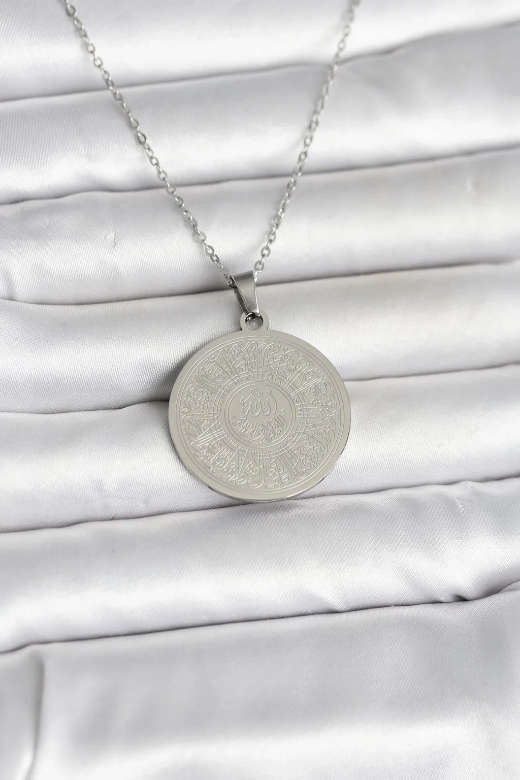 316L Çelik Gümüş Renk Ayetel Kürsi ve Allah Yazılı Kolye