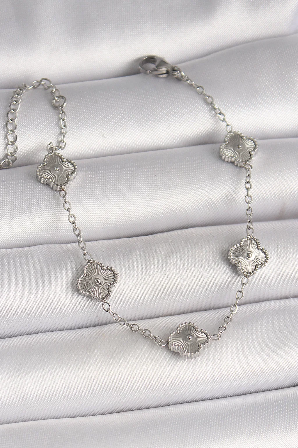 316L Çelik Gümüş Renk İşlemeli Baby Boy Yonca Model Kadın Bileklik