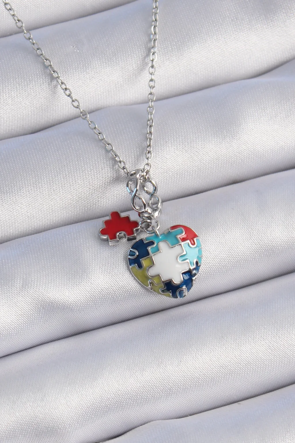 316L Çelik Gümüş Renk Yapboz Motif Kalp Figür Charm Model Kadın Kolye