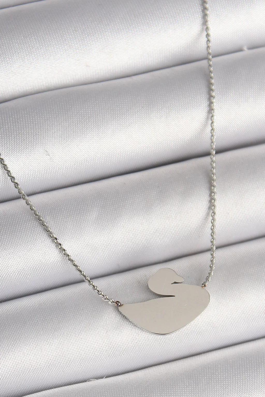 316L Çelik Gümüş Renk Zincir Kuğu Model Kadın Kolye