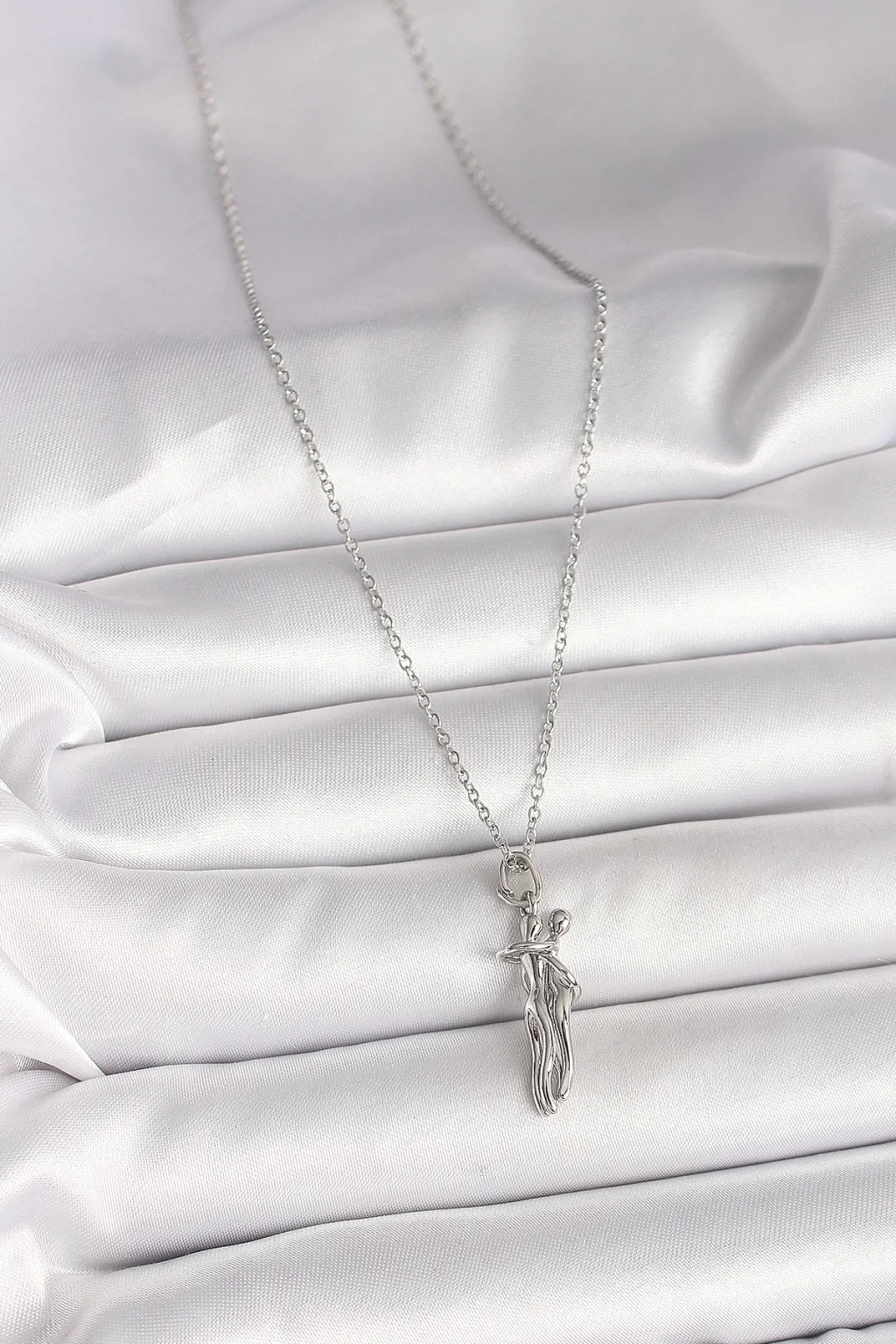 316L Çelik Gümüş Renk Zincir Sarılma Model Kadın Kolye
