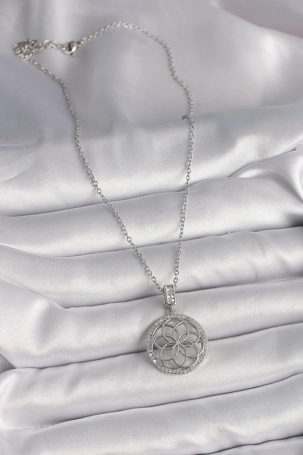 316L Çelik Gümüş Renk Zincir Zirkon Taşlı Lotus Model Kadın Kolye