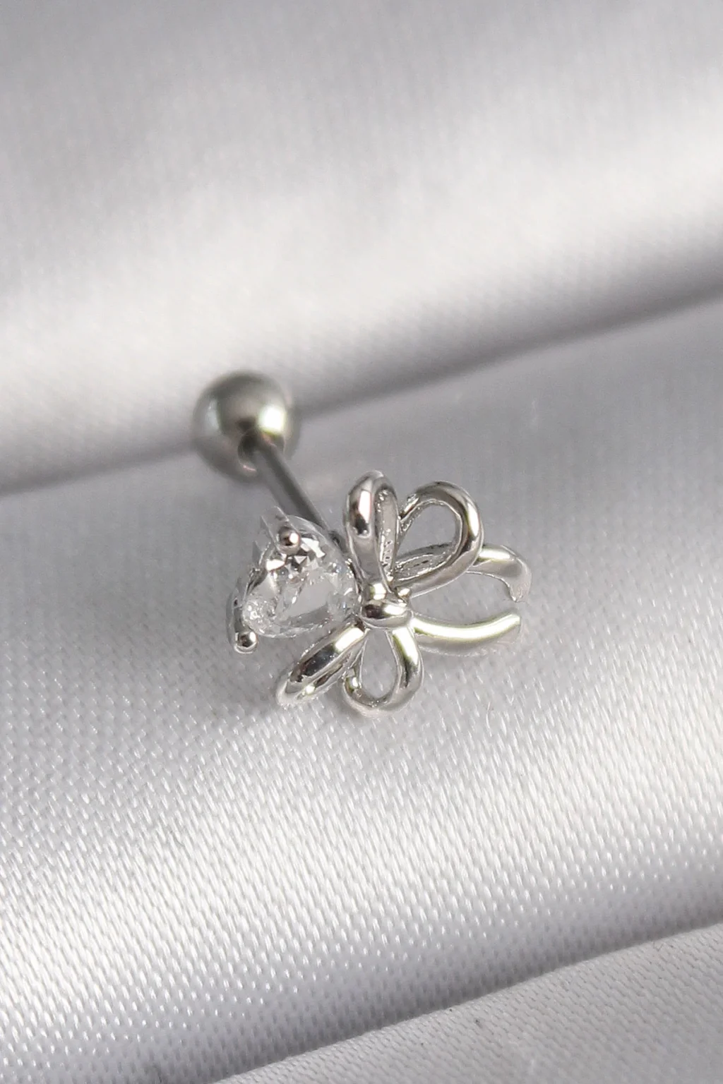 316L Çelik Gümüş Renk Zirkon Taşlı Kelebek Model Tragus Piercing