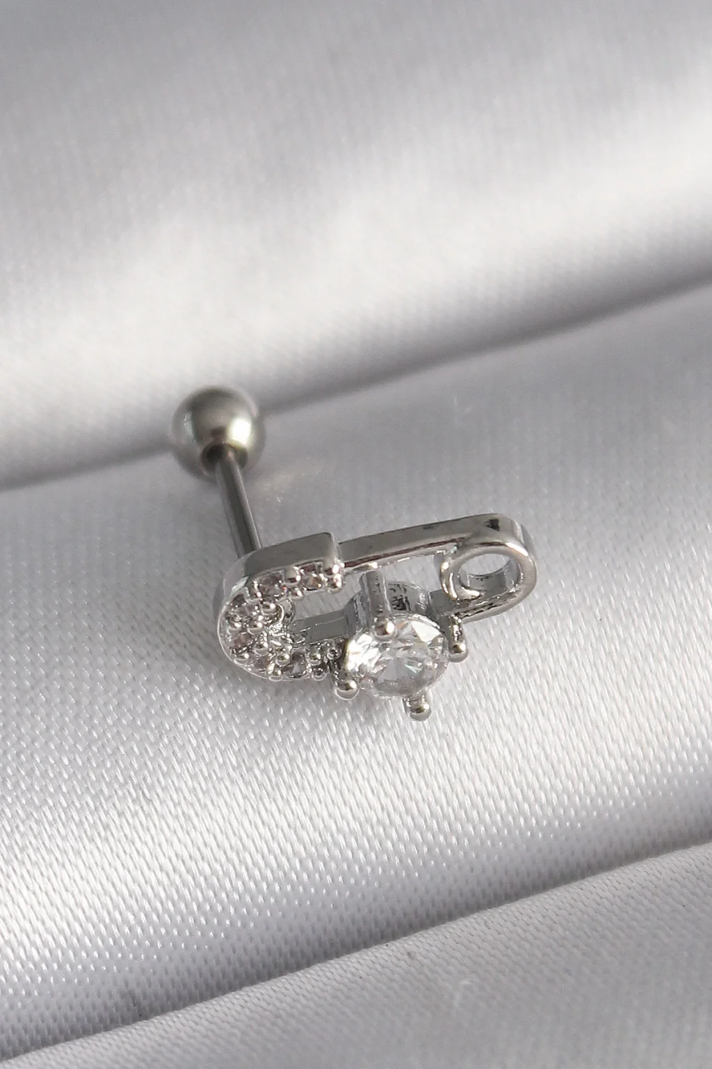 316L Çelik Gümüş Renk Zirkon Taşlı Toplu İğne Tragus Piercing