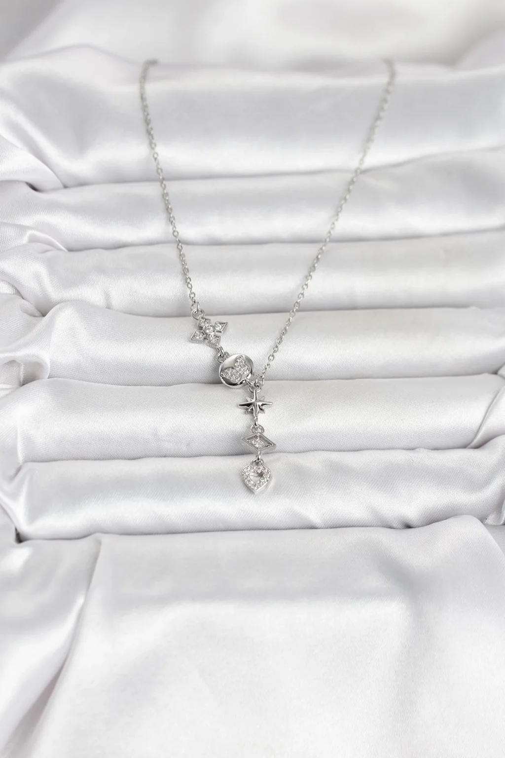 316L Çelik Gümüş Renk Zirkon Taşlı Y Kadın Kolye