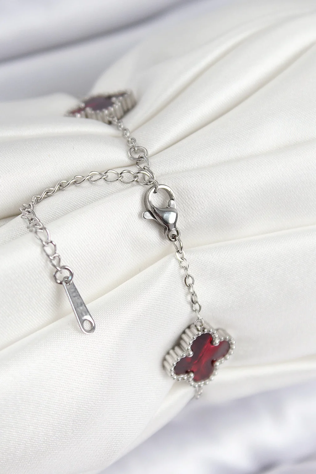 316L Çelik Sedefli Kırmızı Gümüş Renk Yonca Kadın Bileklik