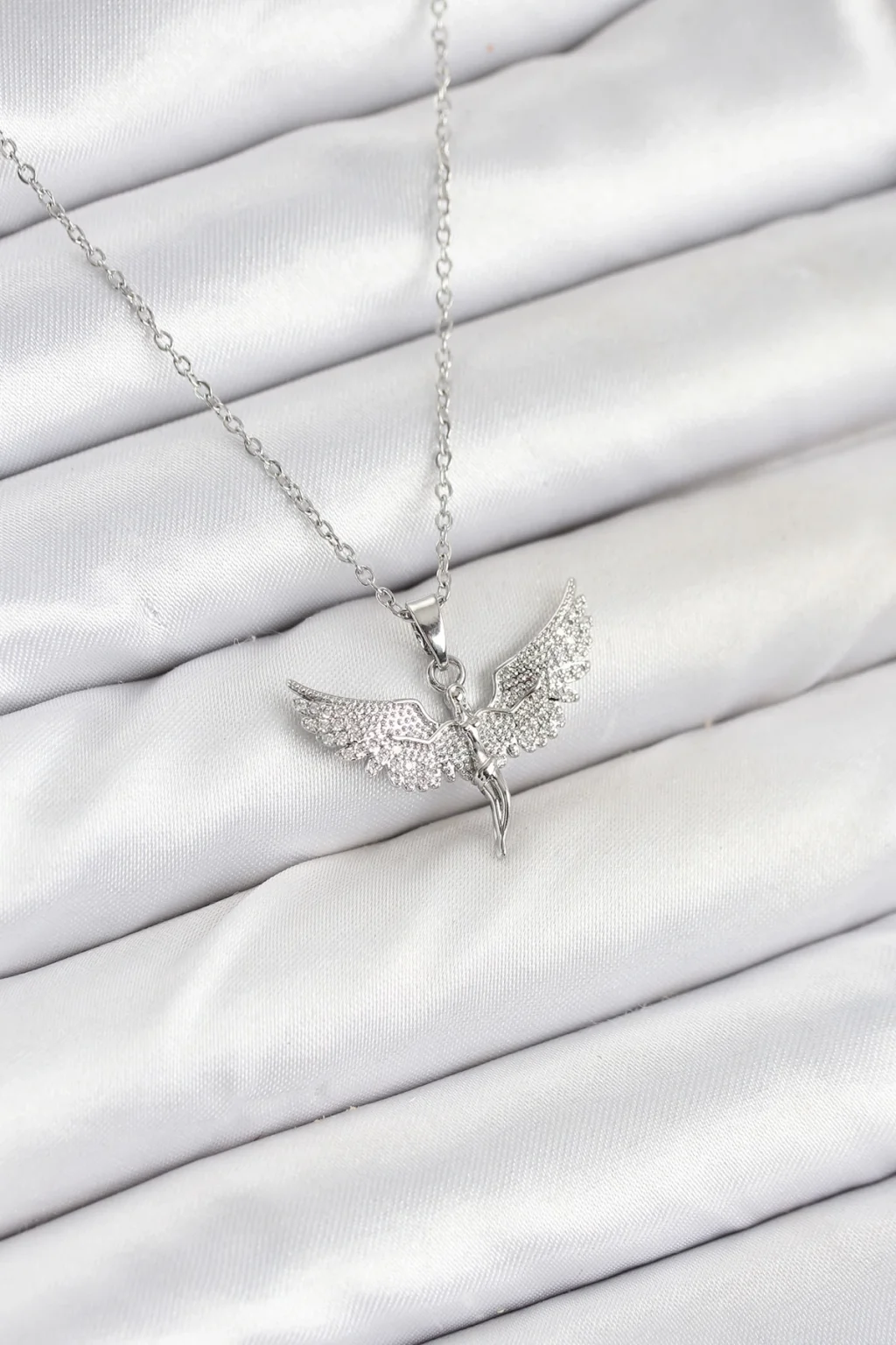 316L Çelik Zincir Gümüş Renk Melek Model Kadın Kolye