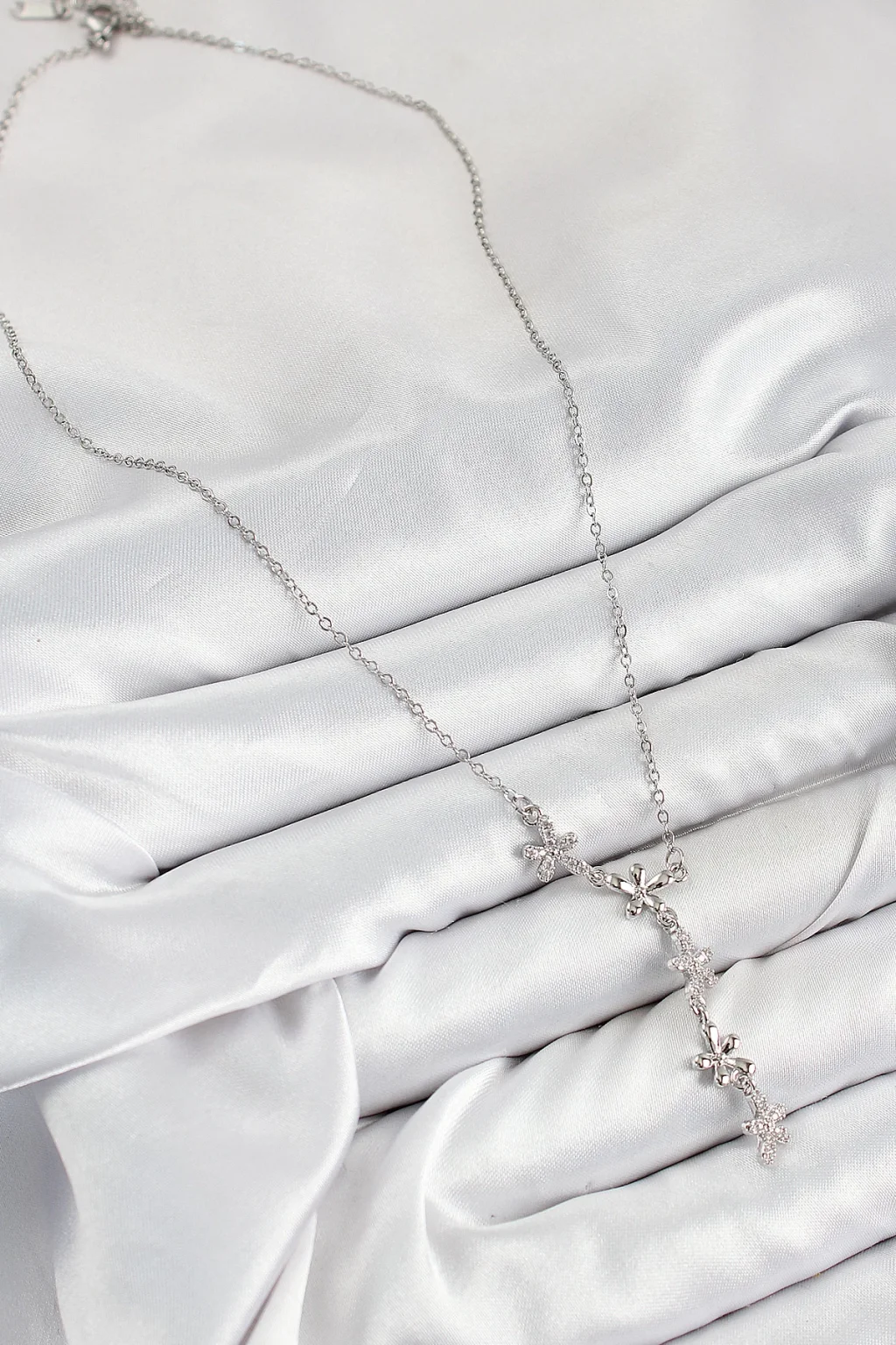 316L Çelik Zirkon Taşlı Çiçek Model Gümüş Renk Kadın Kolye