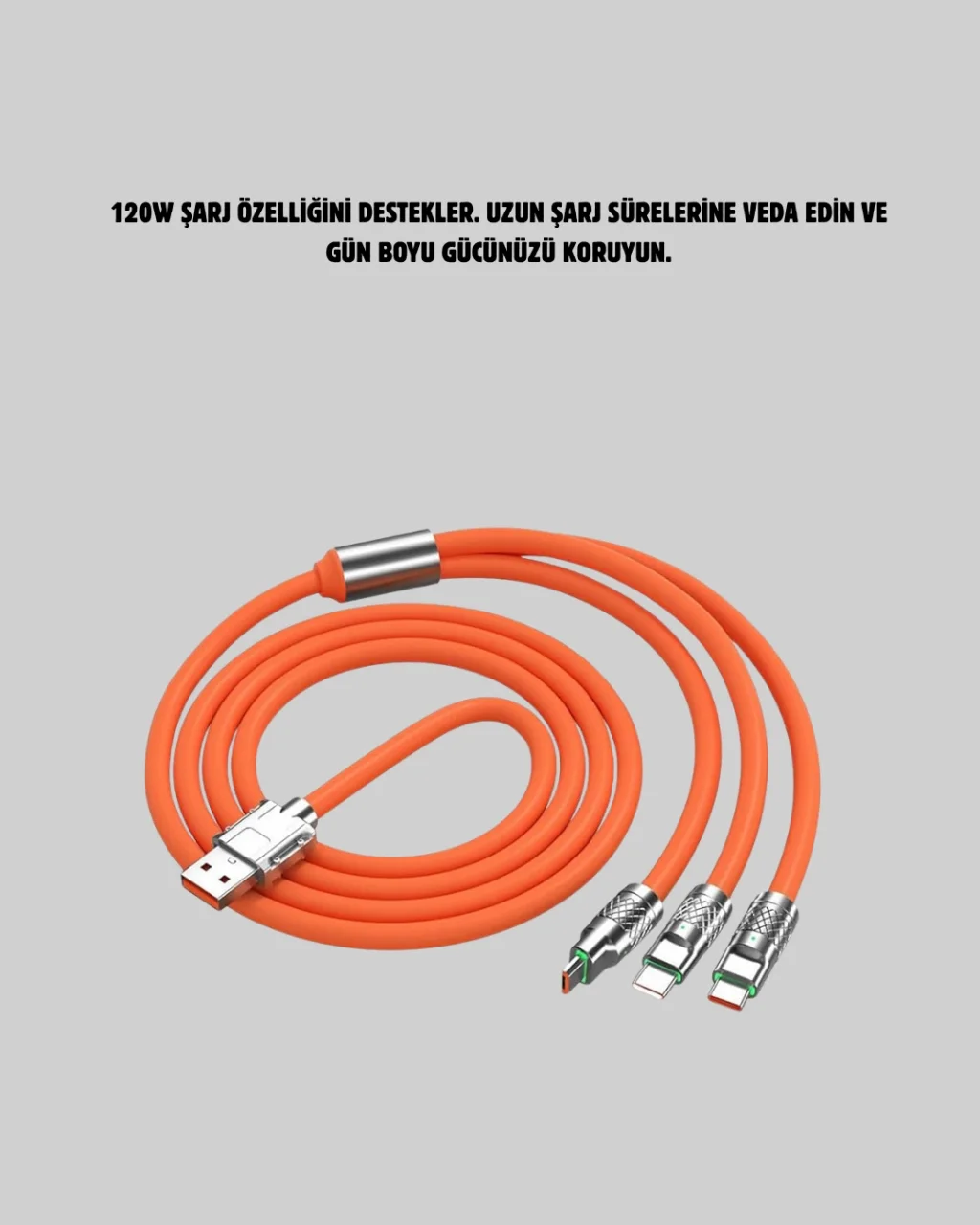 Bu şarj kablosu, en hızlı ve en dayanıklı şarj çözümünü arayan profesyoneller için geliştirildi. 120 W destekli çinko alaşımlı uçlar, yüksek sıcaklık ve enerjiye karşı uzun ömür sağlar. Micro‑USB, Lightning ve Type‑C bağlantıları, tüm cihazlara uyumlu yapı sunar.120 W çıkış gücü sayesinde telefon, tablet veya diğer cihazlarınızı kısa sürede şarj edebilir, aynı anda veri aktarımı yapabilirsiniz. 1,2 metrelik kablo uzunluğu, masa başında çalışırken rahat hareket sağlar; kablo yapısındaki dolaşmaz teknolojisi, çantada zaman kaybını önler.Estetik ve modern tasarımıyla bu kablo, hem bireysel hem de iş kullanımı için ideal. Uzun ömürlü kablo gövdesi ve dayanıklı uçları, yıllarca güvenilir kullanım sağlar. Özellikle yoğun ofis çalışanları ve sık seyahat edenler için tasarlanmış bu kablo, hız ve dayanıklılığı ile öne çıkıyor.