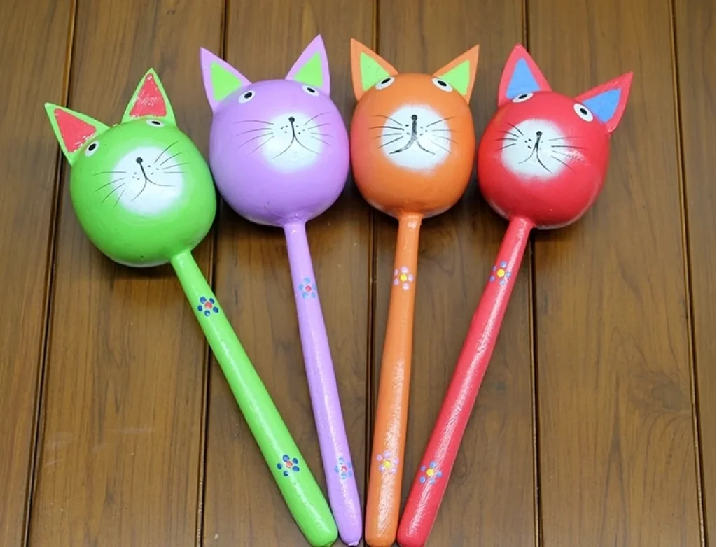 Ahşap Kedi Marakas Tekli Polos:29 Ürün Ölçüleri 25 Cm
