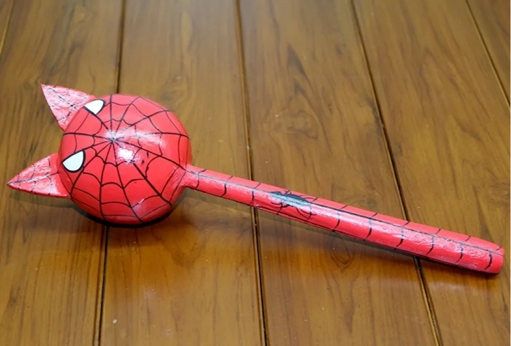 Ahşap Kedili Spiderman Marakas Tekli Polos:24 Ürün Ölçüleri 25 Cm
