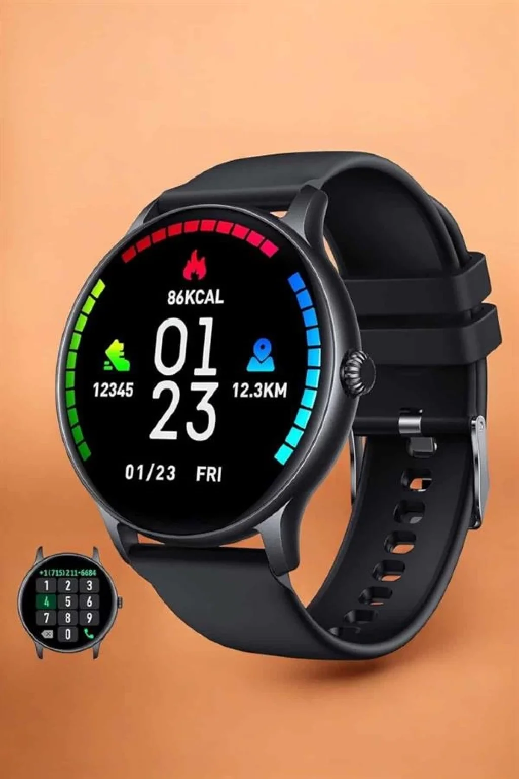 AMOLED ekranıyla dikkat çeken bu akıllı saat, parlak ve canlı renkleriyle görsel bir şölen sunar. Tüm bildirimlerinizi ve sağlık verilerinizi net bir şekilde takip edebileceğiniz geniş ekran tasarımı, kullanıcı dostu bir deneyim sağlar. Hem günlük kullanım hem de özel etkinliklerde şıklığınızı tamamlayan bu saat, modern yaşamın hızına ayak uydurmak için tasarlanmıştır.Üç Farklı Kordonla Her Duruma UygunSilikon, deri ve metal olmak üzere üç farklı kordon seçeneğiyle gelen bu akıllı saat, stilinizi tam anlamıyla yansıtmanıza olanak tanır. Spor salonunda ter dökerken konfor sunan silikon kordon, iş yerinde zarafetiyle dikkat çeken deri kordon ve özel davetlerde sofistike bir görünüm sağlayan metal kordon ile her anınıza uyum sağlar.Hayatınızı Kolaylaştıran Gelişmiş ÖzelliklerAdım sayar, kalp ritmi ölçer ve uyku takibi gibi sağlık odaklı özellikleriyle, sağlıklı bir yaşam tarzını benimsemenizi destekler. Suya ve toza dayanıklı yapısıyla, zorlu koşullarda bile güvenle kullanılabilir. Uzun pil ömrü sayesinde kesintisiz bir deneyim sunarken, gelen çağrılar ve mesajlar gibi bildirimlerinizi kontrol etmenize olanak tanır.