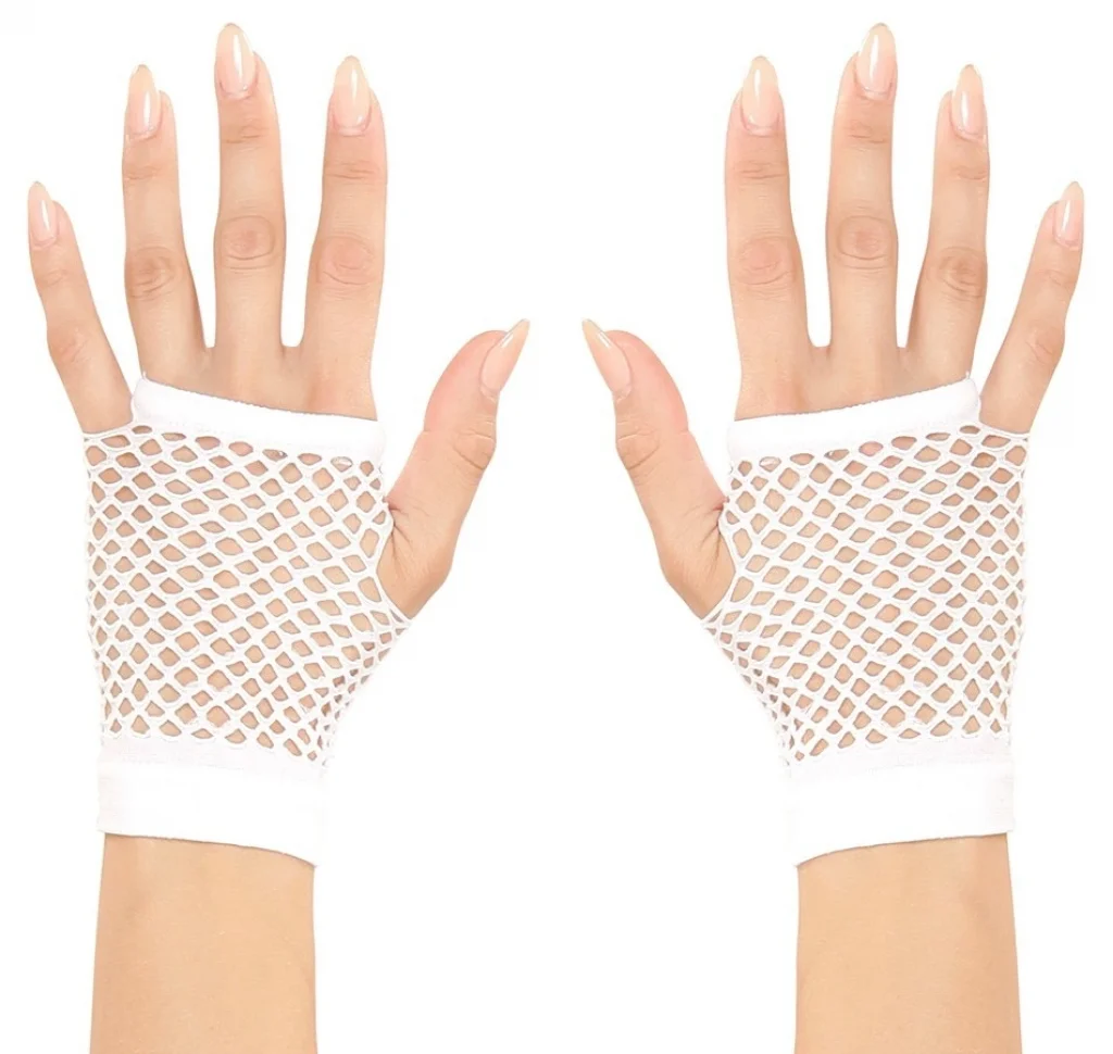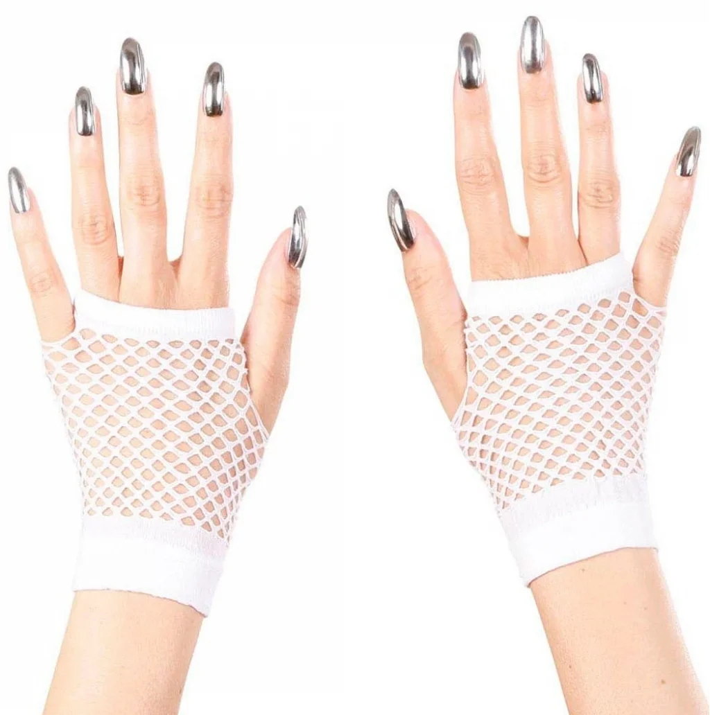 Karnaval ve cadılar bayramı kostümünüze bir dokunuş katacak kısa beyaz örgü eldivenler | Görünümünüzü bu 11 cm beyaz örgü eldivenlerle tamamlayın