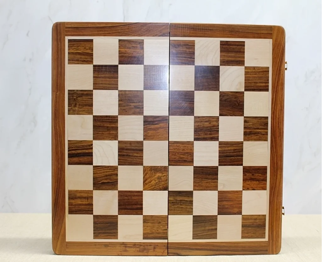 Özel Vernikli Mıknatıs Taşlı Ahşap Katlanabilir Kutulu Satranç Oyunu 25 Cm G222