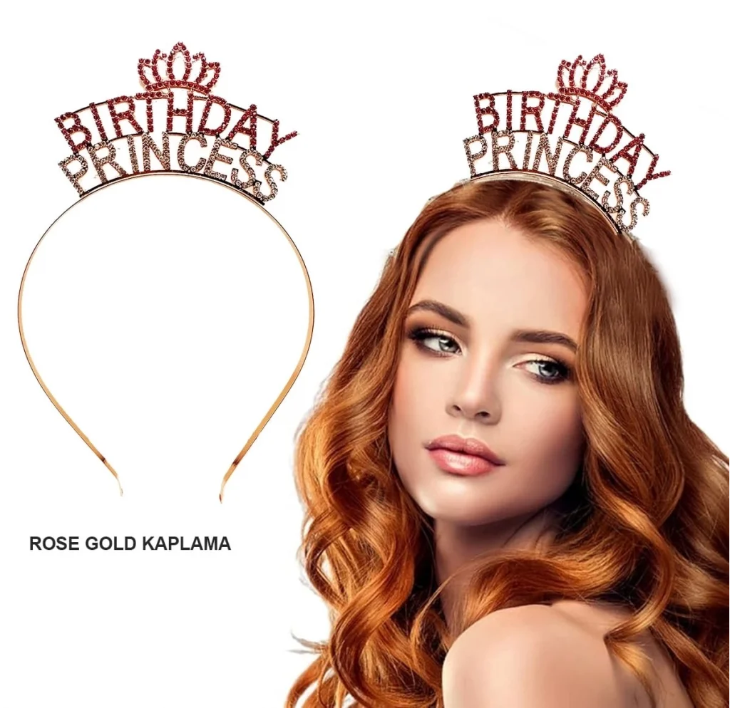 Doğum gününüzde parlamak için harika bir aksesuar "Birthday Princess" yazılı bu göz alıcı taç, kristal taş detayları ve rose gold kaplama yapısı ile özel günlerinizi daha da unutulmaz kılıyor.