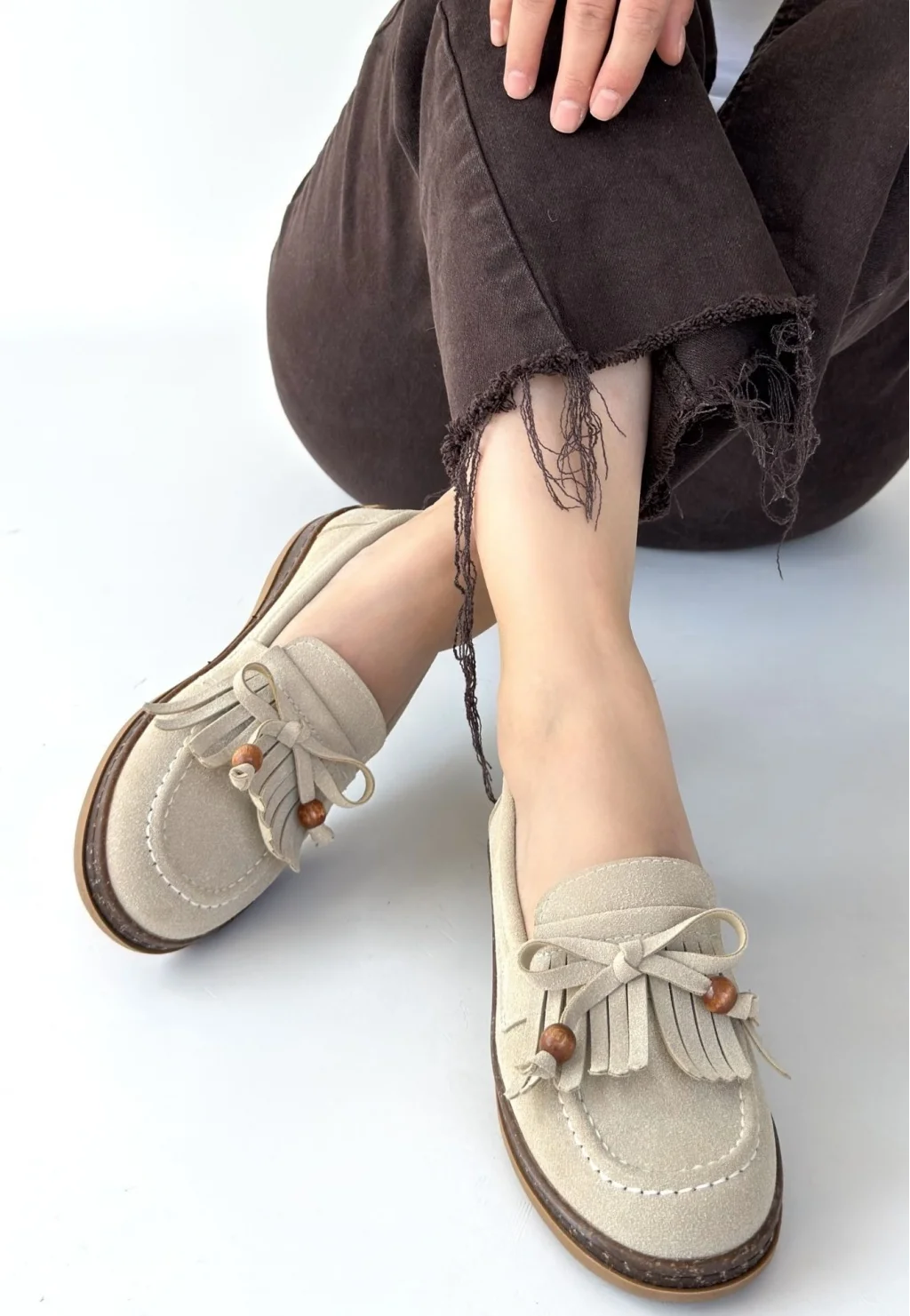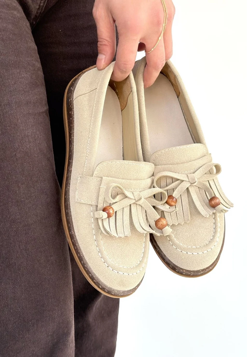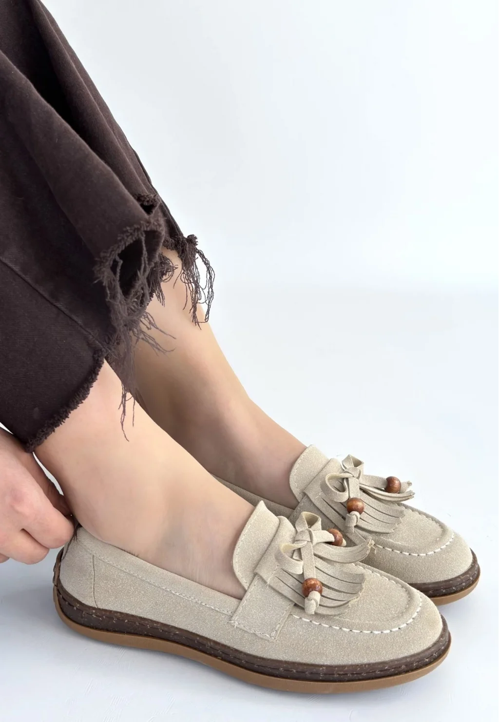 Boriy Bej Deri Tozu Süet Babet Ayakkabı