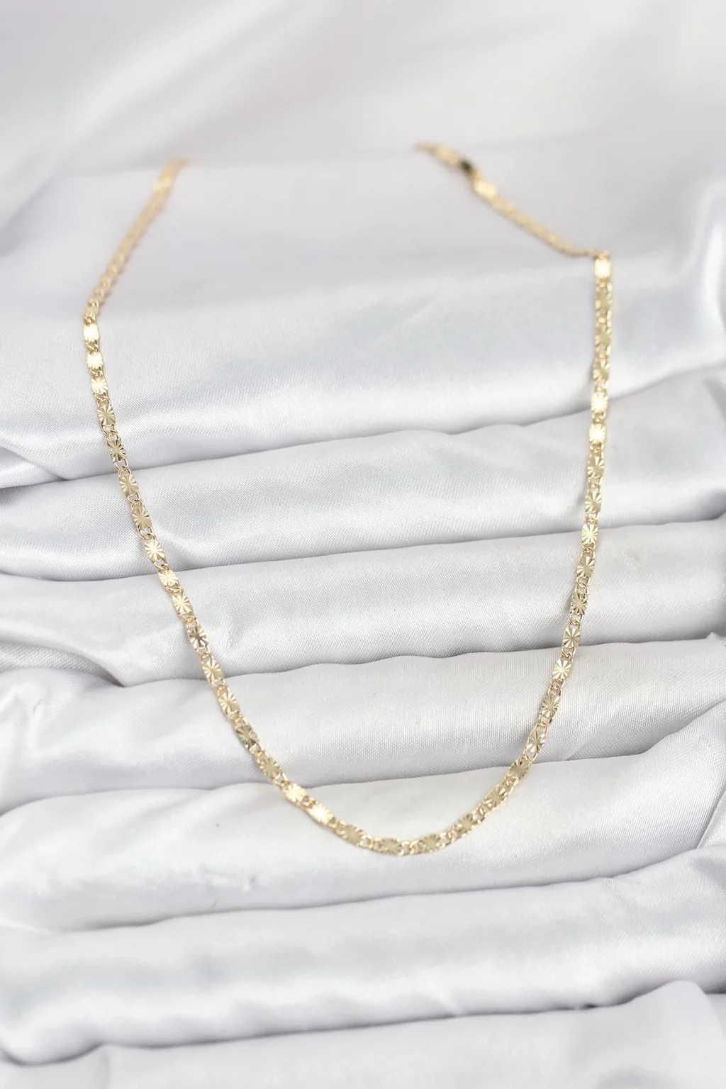 -Marka Kalitesi: CM markasının yüksek standartlı kaplama teknolojisi ile üretilmiştir.-Uzunluk: 45 cm uzunluğundadır-Materyal: Dayanıklı pirinç materyal üzerine 1. Sınıf 14K Gold (Altın) Rengi Kaplama uygulanmıştır.-Dayanıklılık: Doğru ve özenli kullanımda kararma ve renk solmasına karşı dirençlidir.-Kullanım Önerisi: Ürününüzün ışıltısını ve kaplama kalitesini uzun yıllar koruyabilmesi için parfüm, su, deterjan ve kimyasal maddelerle doğrudan temasından kaçınmanızı öneririz.-Cilt Uyarısı: Her cilt yapısının metal ve kaplamalara vereceği tepki (pH değerine bağlı olarak) farklılık gösterebilir.-Sağlıklı ve mutlu günlerde kullanmanız dileğiyle.