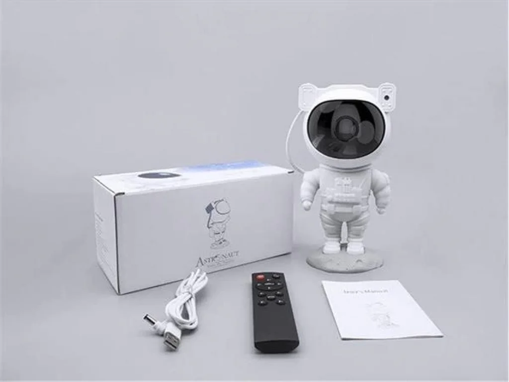 Hayal gücünüzü harekete geçiren Astronot Projeksiyon Lambası, benzersiz bir yıldız ve nebula deneyimi sunuyor. Telefonunuzla kolayca eşleşen Bluetooth özelliği sayesinde müzik dinleyebilir veya cihazın içerisinde yer alan kuş cıvıltıları, dalga sesleri, şömine ateşi ve uyku müzikleriyle rahatlatıcı bir atmosfer yaratabilirsiniz. 120x113x228 mm boyutları ve 655g ağırlığıyla kompakt ve hafif bir tasarıma sahip olan bu lamba, her odaya uyum sağlar.Nebula ve yıldız projeksiyonu aynı anda veya ayrı ayrı kullanılabilir. Hız ve parlaklık ayarları ile manzarayı tam olarak istediğiniz gibi özelleştirebilirsiniz. 45 dakika ve 90 dakika olmak üzere iki zamanlama modu bulunan cihaz, uyku öncesi kullanımlar için idealdir. Dekorasyon olarak da kullanılabilen lamba, şık ve modern bir görünüm sunar. Paket içeriğinde astronot projeksiyon lambası, taban, USB güç kablosu ve uzaktan kumanda bulunmaktadır (pil dahil değildir).