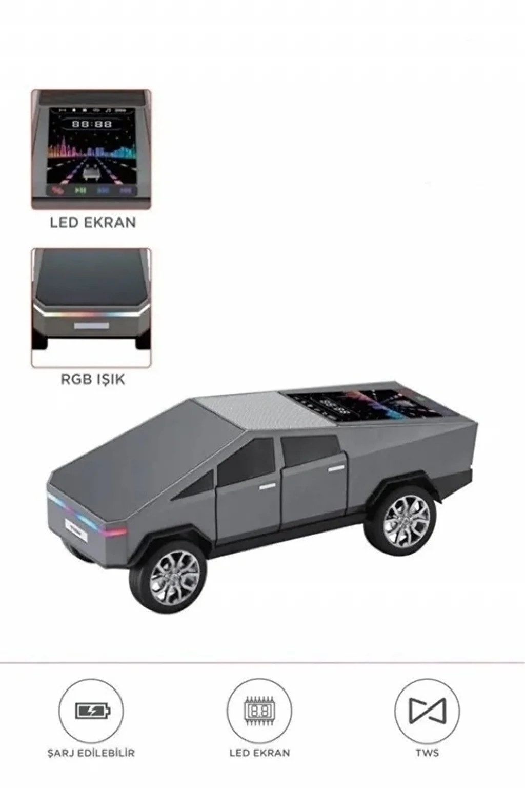D68 Cyber Model Araba Tasarımlı Bluetooth Hoparlör 15w Güçlü Ses Rgb Led /tws/usb Gri