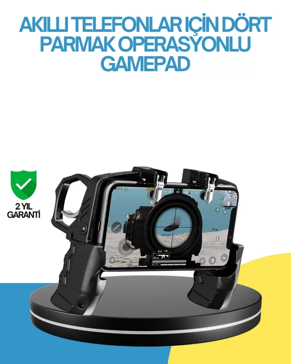 Dört parmakla çalışmayı destekleyen bu mobil gamepad, rekabetçi mobil oyunlarda daha hızlı ve kontrollü hareket etmek isteyen oyuncular için tasarlanmıştır. Ateş etme, atlama, çömelme, nişan alma, etkileşim ve uzanma gibi temel oyun hareketlerini aynı anda yapabilmenizi sağlar. Bu sayede ekrana bağımlı kalmadan daha akıcı ve profesyonel bir oyun deneyimi sunar.Ergonomik kavrama yapısı, avuç içine tam oturacak şekilde tasarlanmıştır. Uzun süreli oyun seanslarında el yorgunluğunu minimum seviyeye indirir ve konforlu bir tutuş sağlar. Dengeli ağırlığı ve el anatomisine uygun formu sayesinde kontrol hissi her an korunur.Orta boy düğme tasarımı, oyun sırasında ekran görüşünü engellemez. Bu özellik, özellikle FPS ve aksiyon türü oyunlarda çevresel farkındalığı artırır. Tetik mekanizması hassas çalışır ve komutlarınızı gecikme olmadan oyuna aktarır.Dayanıklı yapısı sayesinde uzun süreli kullanıma uygundur. Güvenli malzeme yapısı, cihazınızın ekranına zarar vermeden kullanım sağlar. Gerçekçi oyun hissi arayan mobil oyuncular için geliştirilen bu gamepad, reflekslerinizi daha etkin kullanmanıza yardımcı olur. Kompakt yapısı sayesinde kolay taşınır ve her ortamda profesyonel oyun deneyimini yanınızda taşımanızı sağlar.