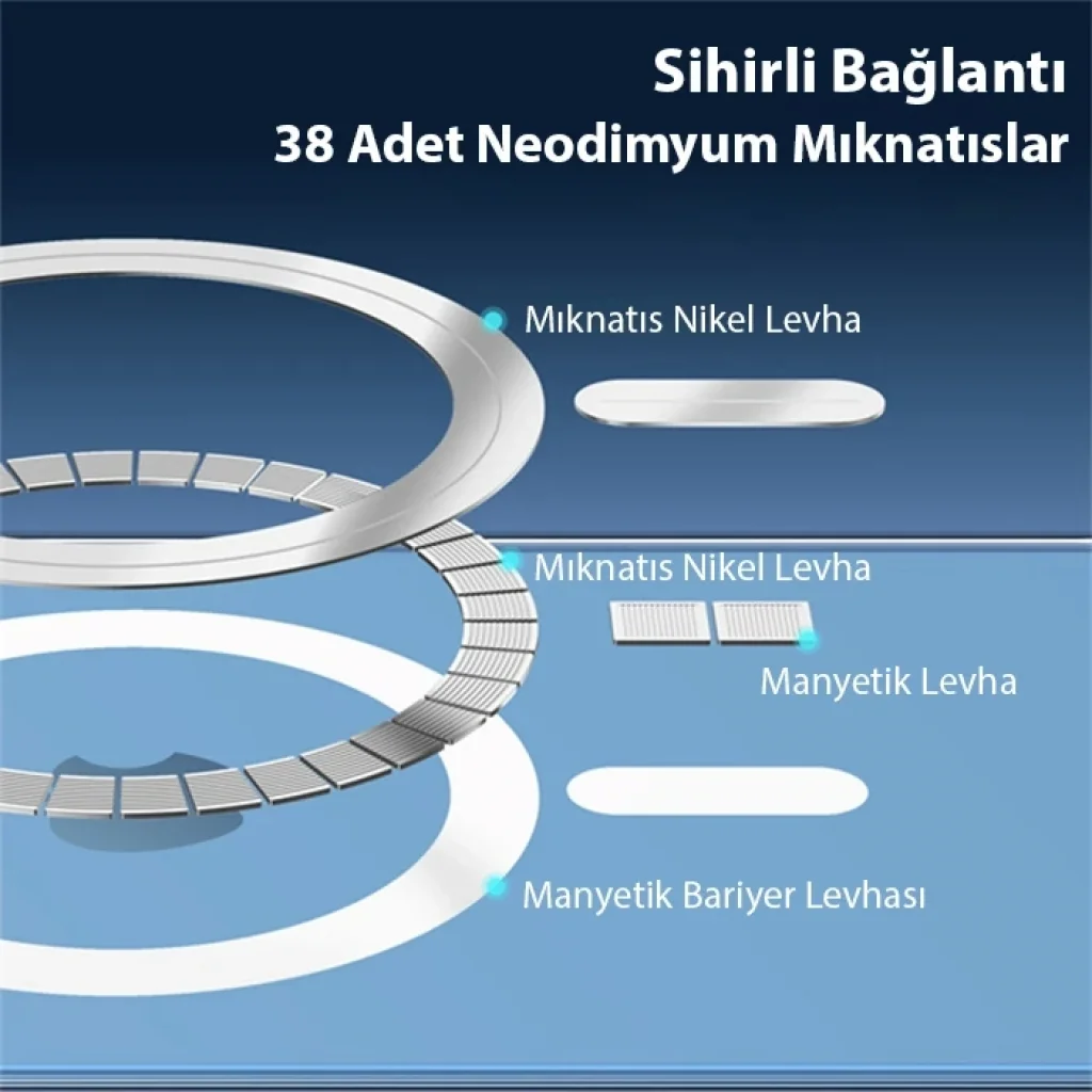 Manyetik yüzey kablosuz şarj cihazlarına otomatik hizalama imkanı sunar.
