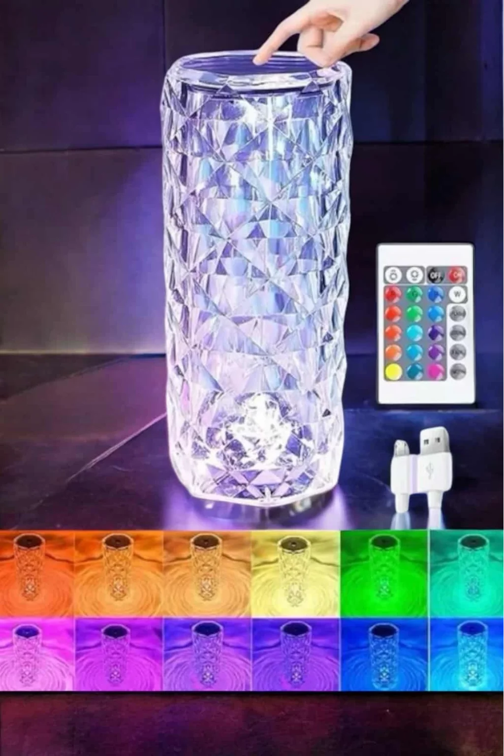 Evinizin her köşesinde estetik bir dokunuş sağlayacak olan Premium RGB Kristal Aydınlatma Lambası, fonksiyonel özellikleri ve şık tasarımıyla dikkat çekiyor. Klasik aydınlatma çözümlerinden sıkılanlar için hem dekoratif hem de teknolojik bir yenilik sunuyor.Teknik Özellikler: RGB LED Işık: 16 milyon renk seçeneği ile her ruh haline uygun bir atmosfer yaratır. Uzaktan Kumanda: Renk değişimi, parlaklık ayarı ve mod seçeneklerini kolayca kontrol etmenizi sağlar. Kristal Şıklığı: Özel kristal tasarımı, ışığın kırılmasını artırarak benzersiz bir parıltı sağlar. Farklı Aydınlatma Modları: Renk döngüsü, sabit ışık, titreşimli ışık gibi çeşitli modlar sunar. Yumuşak Gece Lambası Işığı: Dinlendirici ve göz yormayan ışık yoğunluğu ile huzurlu bir uyku deneyimi sağlar. Dayanıklı Malzeme: Yüksek kaliteli malzemelerden üretilmiş olup uzun ömürlüdür.Kullanım Alanları: Çocuk odası, yatak odası, ofis, oturma odası ve çalışma alanlarında dekoratif ve fonksiyonel bir ışık kaynağı. Gece lambası, masa lambası veya ortam aydınlatması olarak çok yönlü kullanım.Hediye İçin Mükemmel Bir Seçim:Sevdiklerinizin özel günlerini unutulmaz kılmak için ideal bir hediye seçeneği. Özellikle doğum günü, sevgililer günü veya yılbaşı gibi anlarda etkileyici bir hediye sunmak isteyenler için birebir.Evinize veya sevdiklerinize değer katmak için Premium RGB Kristal Aydınlatma Lambası ile ışığın büyüsünü keşfedin!
