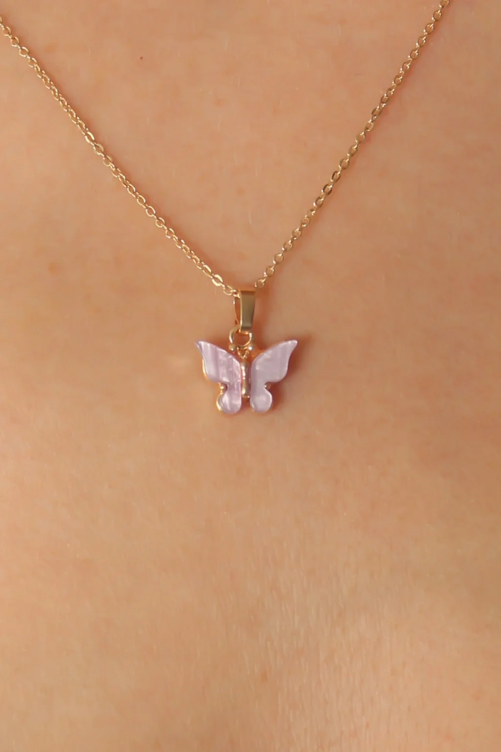 Gold Lila Renk Kelebek Figür Kadın Kolye