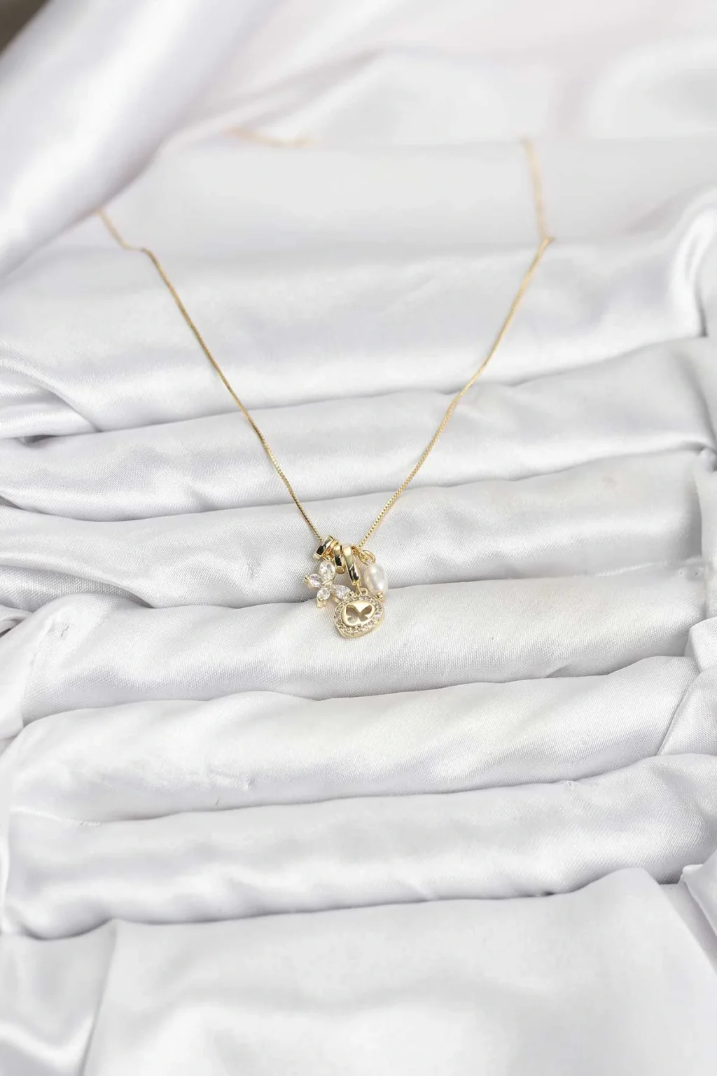 Gold Renk Pirinç Minimal Kelebek Charmlı Kadın Kolye