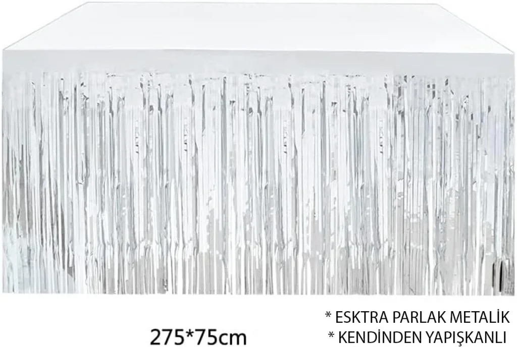 Gümüş Metalize Masa Eteği 275x75 cm &ndash Kendinden Yapışkanlı