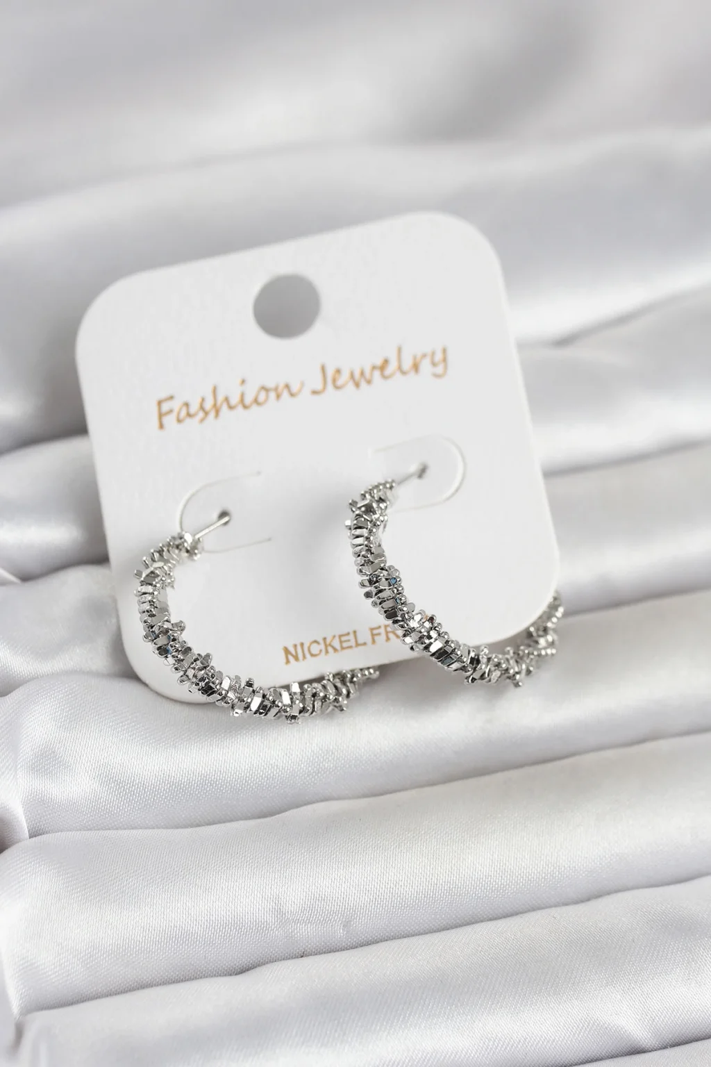 Gümüş Renk Pirinç Tırtık Model Kadın Küpe
