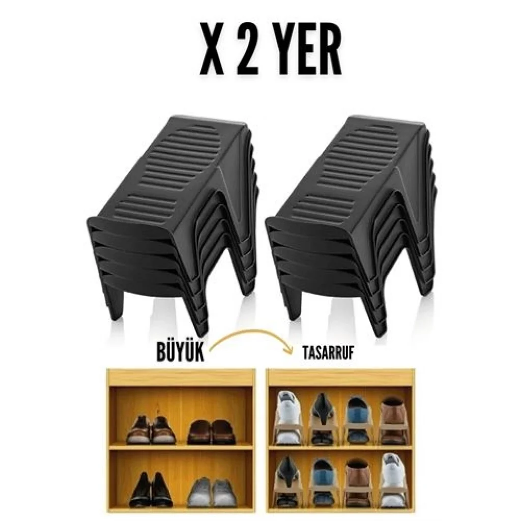 %50 YER TASARRUFU : Dolap Alanını En Üst Düzeye Çıkarın Çift katlı ayakkabı rafı tasarımı, depolama kapasitenizin %50'sinden anında tasarruf etmenize, doğru ayakkabıları hızla bulmanıza, ayakkabı dolabınızı ve gardırobunuzu daha düzenli ve düzenli hale gtirmenize, ortalığı toplamanıza, dolaplarınız ve başkalarına temiz ve düzenli görünmenize yardımcı olur.