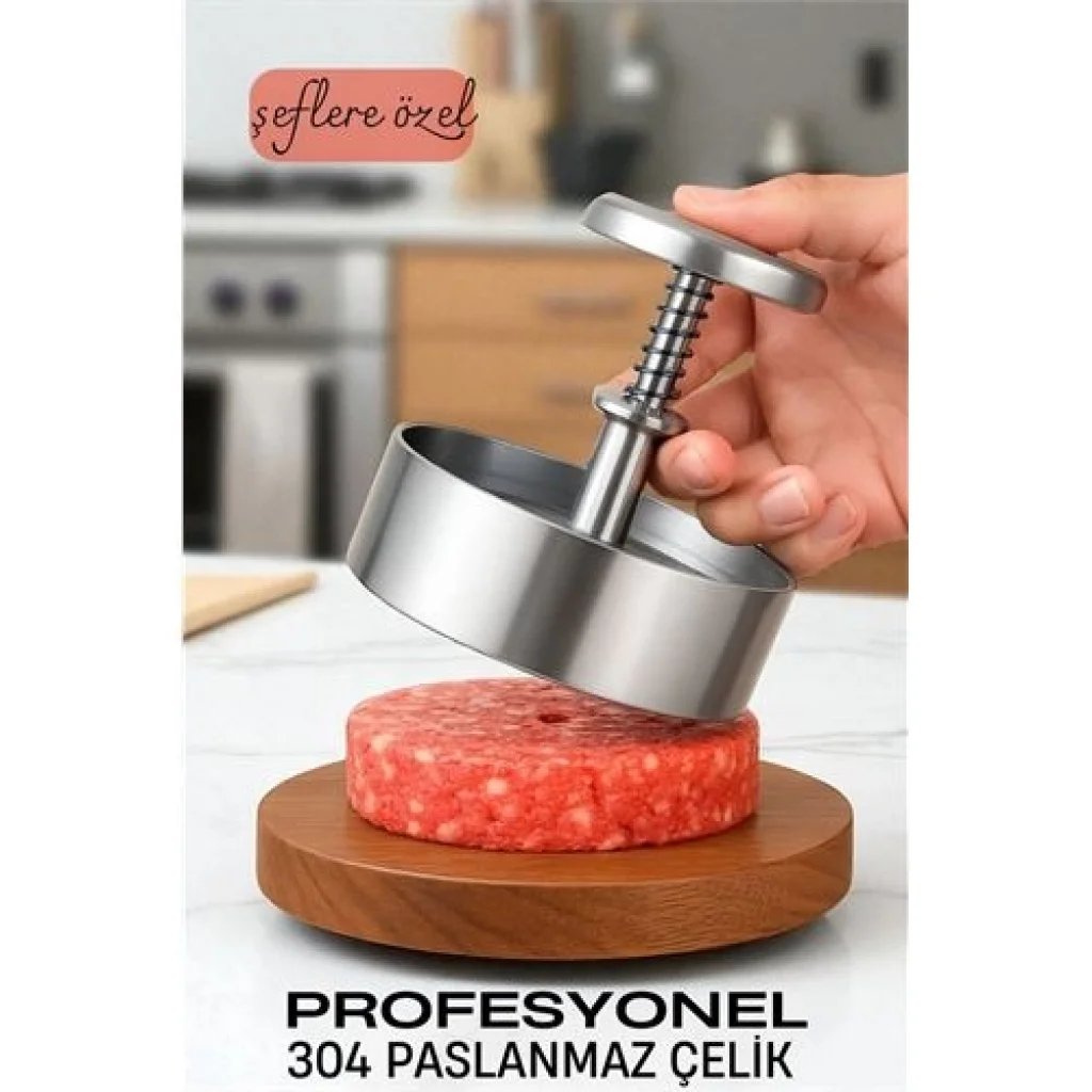 Şeflere Özel Burger Presi – 304 Paslanmaz Çelik | Profesyonel Et Şekillendirme Aparatı