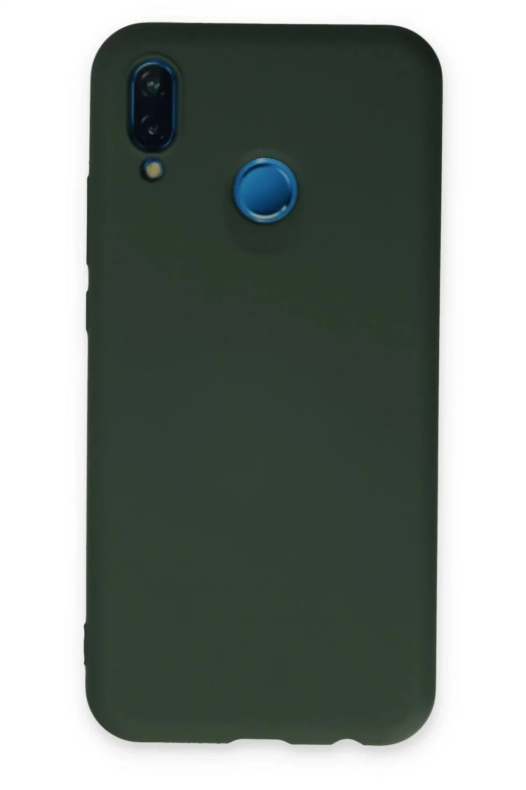 Huawei P20 Lite Kılıf Nano içi Kadife Silikon - Koyu Yeşil-(5796)