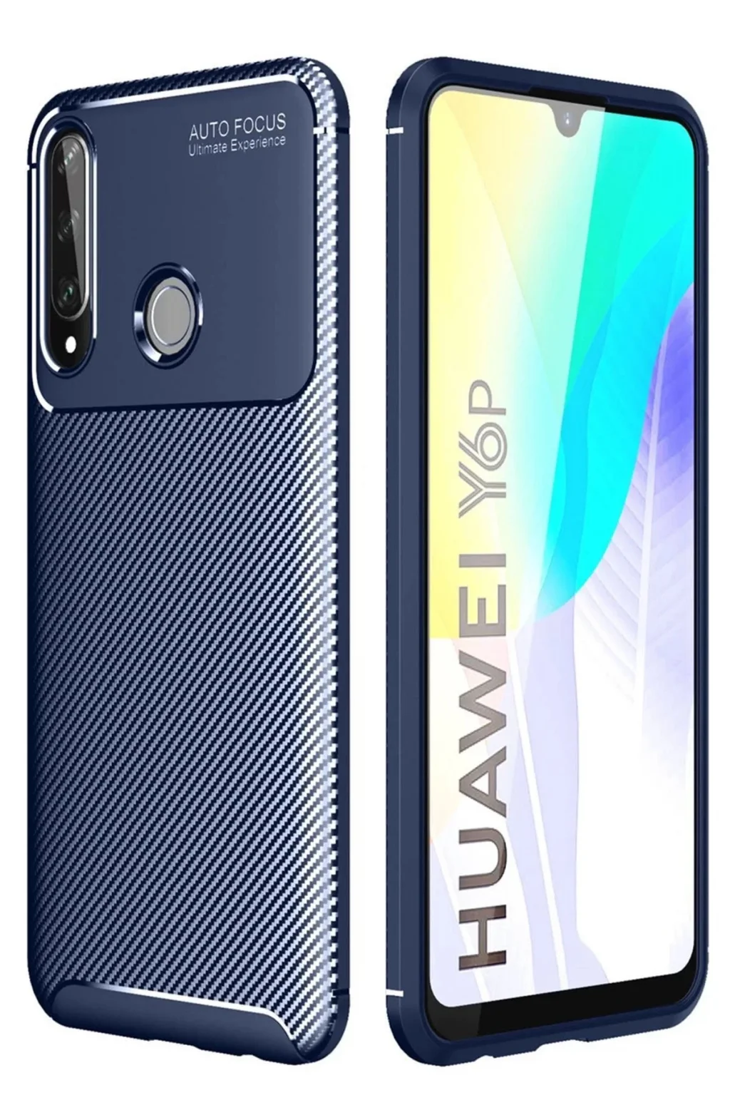 Huawei Y6P Kılıf Auto Focus Karbon Kapak - Lacivert-(5796)