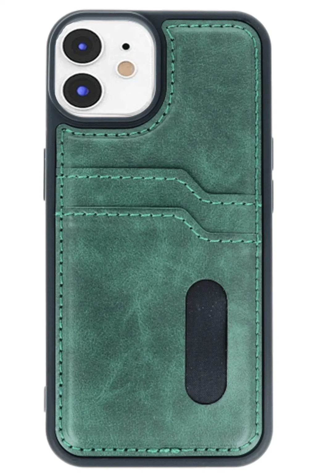 iPhone 11 Kılıf Sara Kartvizitli Deri Kılıf - Koyu Yeşil-(5796)