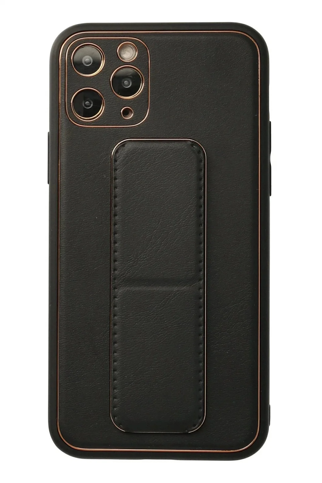 iPhone 11 Pro Kılıf Coco Deri Standlı Kapak - Siyah-(5796)