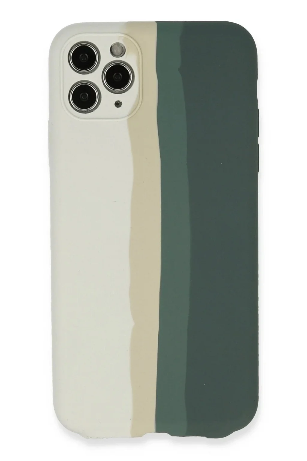 iPhone 11 Pro Kılıf Ebruli Lansman Silikon - Beyaz-Gri-(5796)