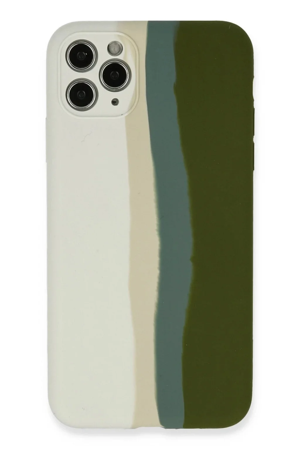 iPhone 11 Pro Kılıf Ebruli Lansman Silikon - Beyaz-Yeşil-(5796)